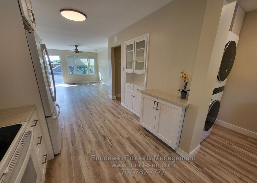 Come see this fully remodeled 2-bedroom, 1-bathroom home located on charming Prospect Street, just minutes from downtown Petaluma. Everything inside is like new with modern finishes and thoughtful details throughout. This home combines modern upgrades, a private outdoor space, and an excellent Petaluma location. Don’t miss your chance—schedule a showing today! Rental Terms Rent: $3,475 / month Security Deposit: $5,200 Appliances: Stove, Refrigerator, Dishwasher, Washer & Dryer, Microwave, Garbage Disposal Application Fee: $40 Available: Now Pet Policy 1 cat or 1 small dog (under 25 lbs.) considered with owner approval Features & Amenities * Fully remodeled interior with quartz countertops & vinyl wood flooring * Stainless steel appliances: refrigerator, electric glass top range, built-in microwave, dishwasher * Stackable washer & dryer in unit * Modern bathroom with tile finishes * Closet organizers in bedrooms & hallway * Ceiling fans in living room and bedrooms * Blackout shades throughout * Instant water heater * Central heating & A/C * EV-friendly home Outdoor & Extra Perks * Large fenced backyard with new landscaping & spacious patio * Gardener and pest control included * 1-car attached garage + 1 driveway parking space * Secure mailbox & Ring security system Restrictions: No smoking, no waterbeds permitted. Deposit: $5,200 Appliances: Stove, Refrigerator, Dishwasher, Washer & Dryer, Microwave, Garbage Disposal Pets and Animals: 1 cat, Dog under 25 lbs. Occupancy Restrictions: No smoking on property and no waterbeds permitted. Utilities/Services: Gardener, Pest Control Available: Now