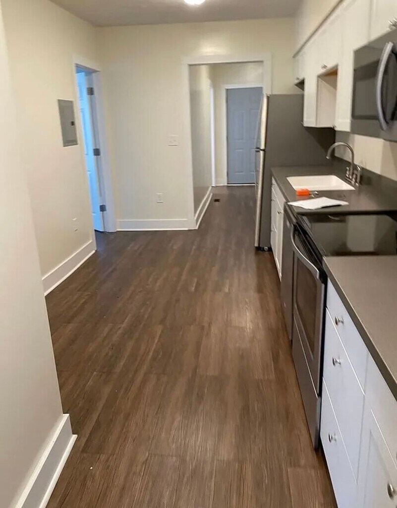 624 S Fess Ave is a historic house that has been transformed and fully remodeled into 5 separate apartments. Apartment #4 is a great 2 bed 2 bath unit on the main level! Each apartment has been remodeled with laminate wood flooring, solid surface countertops, white cabinetry, etc. to create a more modern look. All appliances (W/D, fridge, oven, microwave, dishwasher) are included. There is a parking lot in the back with first come first served parking, so availability is not guaranteed. Residential parking permits can be bought through the City of Bloomington for on-street parking. This unit has central AC and heat.