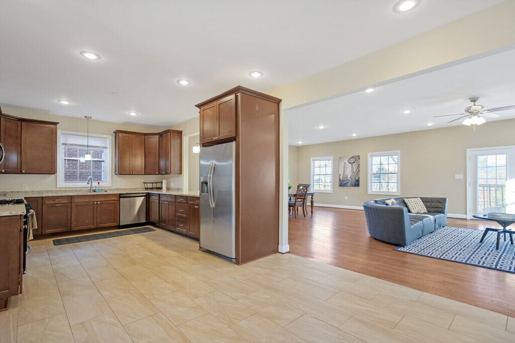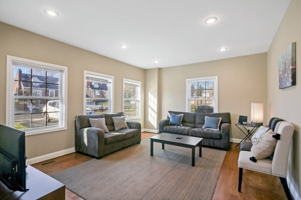 Feel at home in this spacious and bright 4-bedroom, 4-bath home, perfect for families. This home features a fully equipped upstairs kitchen with modern appliances, cookware, and dining essentials. There are three living rooms and two cozy sitting areas, all filled with natural light. In the basement, you’ll find a small kitchenette along with a cozy dining space. The home also includes a private backyard. Pets are welcome with an additional fee; please contact us before booking. Guests can enjoy private parking in the driveway, with additional street parking available nearby. This home is designed for comfort and long stays. Parties, events, and celebrations are not allowed. This home is best suited for extended stays of over 30 nights, providing a comfortable and well-equipped environment. [SI]