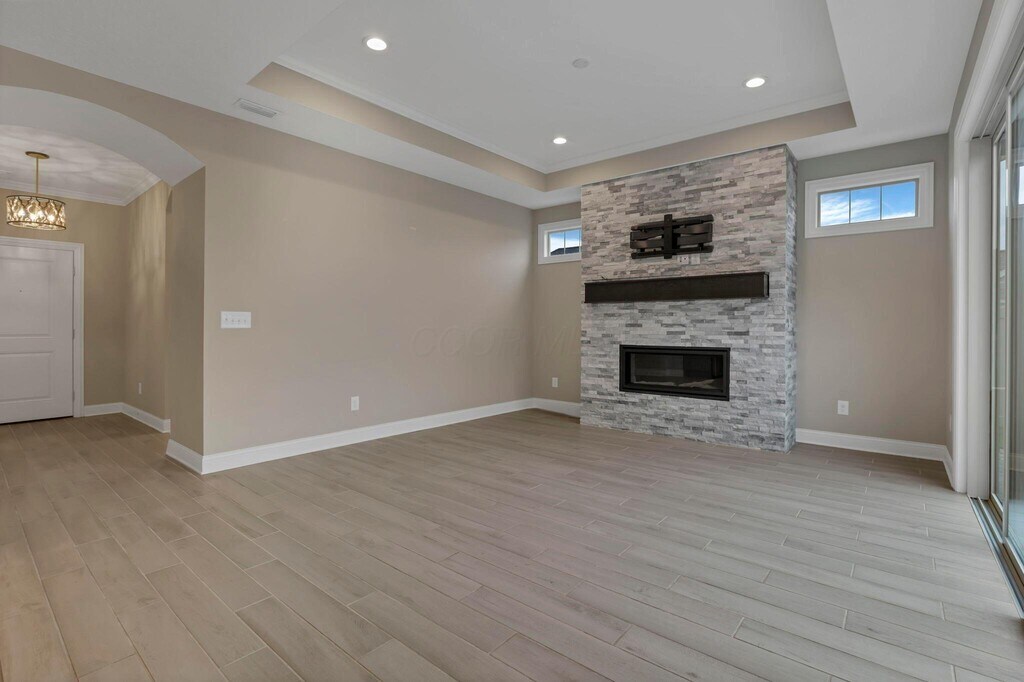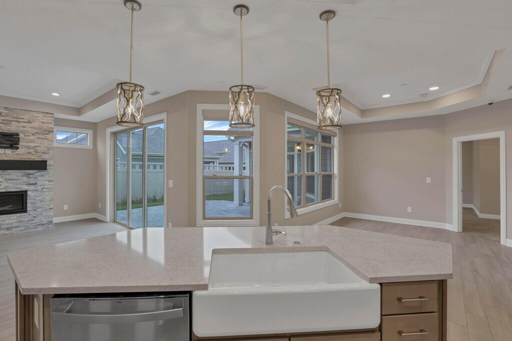 Luxury One-Story Living in Highly Desirable Riverside Epcon Community Welcome to this absolutely stunning,like new Epcon home nestled in one of the most prestigious and peaceful communities along Riverside. Offering true single-story luxury living,this immaculate two-bedroom,two-bath residence features a bright open floor plan with elegant finishes and modern sophistication throughout. Step inside to find a chef's dream kitchen complete with upgraded stainless-steel appliances,gorgeous quartz countertops,ample cabinetry,and a large island perfect for entertaining. The expansive great room boasts a cozy fireplace and abundant natural light,flowing seamlessly into a dedicated home office/den—ideal for today's work-from-home lifestyle. The primary suite is a true retreat,featuring a spacious sitting area extension,a huge walk-in closet,and a zero-curb,walk-in shower with upscale finishes. Every detail of this home has been thoughtfully designed for comfort,accessibility,and elegance. Outside,enjoy your morning coffee on the inviting front porch or unwind on the rear paver patio overlooking a private,low-maintenance yard with artificial turf and a gas hookup for your grill. Additional features include: EV charger in the large two-car garage with built-in storage racks. Blinds throughout. Washer and dryer included. Handicap accessible with no steps. Grass mowing covered by HOA. Corner lot with exceptional privacy. Located just minutes from Bridge Park's dining,shopping,and entertainment,this home perfectly blends convenience,comfort,and class. Available for immediate occupancy—this is truly a one-of-a-kind rental opportunity in Dublin.