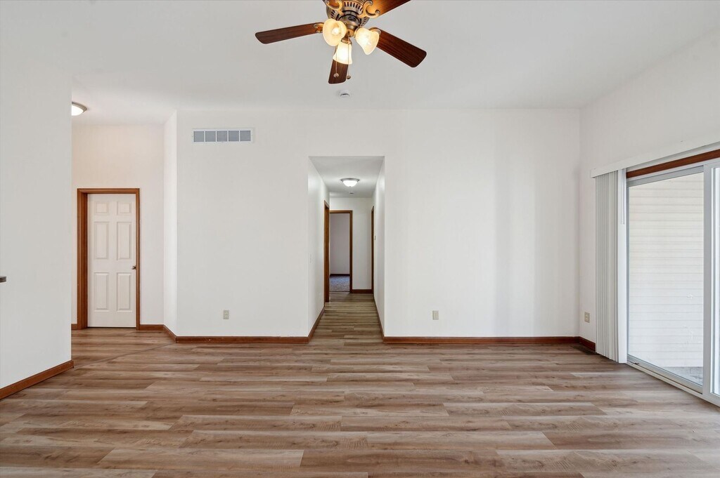 Large 3 Bed 2 Bath ranch home for rent. Open floor plan, Vaulted ceilings, private patio, Washer and dryer hookups. two car garage in Great Neighborhood. Tenants pay all utilities. Call x1 for more info and to set up a showing. *credit and background check required*