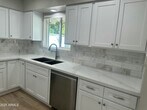 55+ community. Complete remodel. New kitchen cabinets with self closing drawers and doors,quartz counters,marble backsplash,stainless steel appliances,ceiling fans,faucets,sinks and recessed canned lighting on dimmers. Beautiful 9x40 porcelain plank flooring throughout with new baseboard. Hall bathroom has been renovated with an expanded shower and classy niche,new vanity and quartz counters too. Dual pane windows and new water heater. Backyard features covered patio new gravel installed with 3 citrus trees that are on automatic timer. Large laundry room with lots of cabinets. Nothing was done cheaply,all the finishes are higher end.