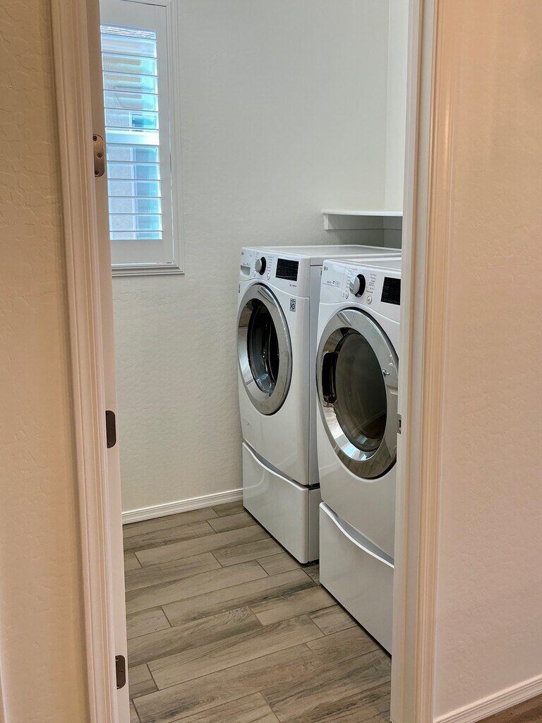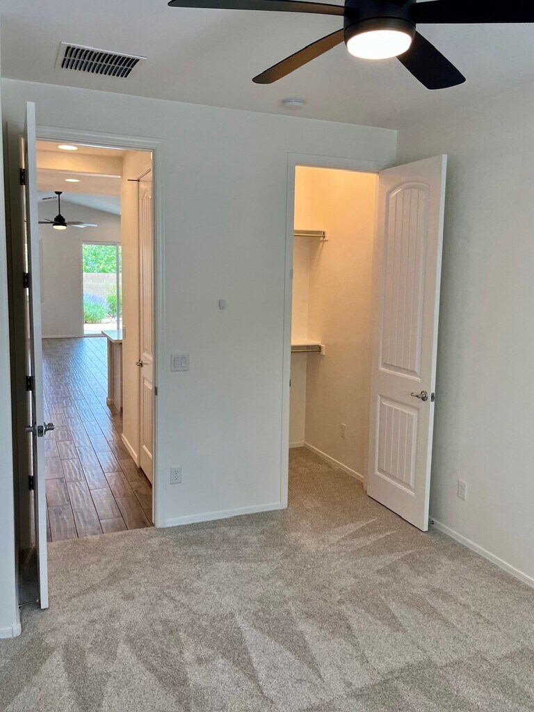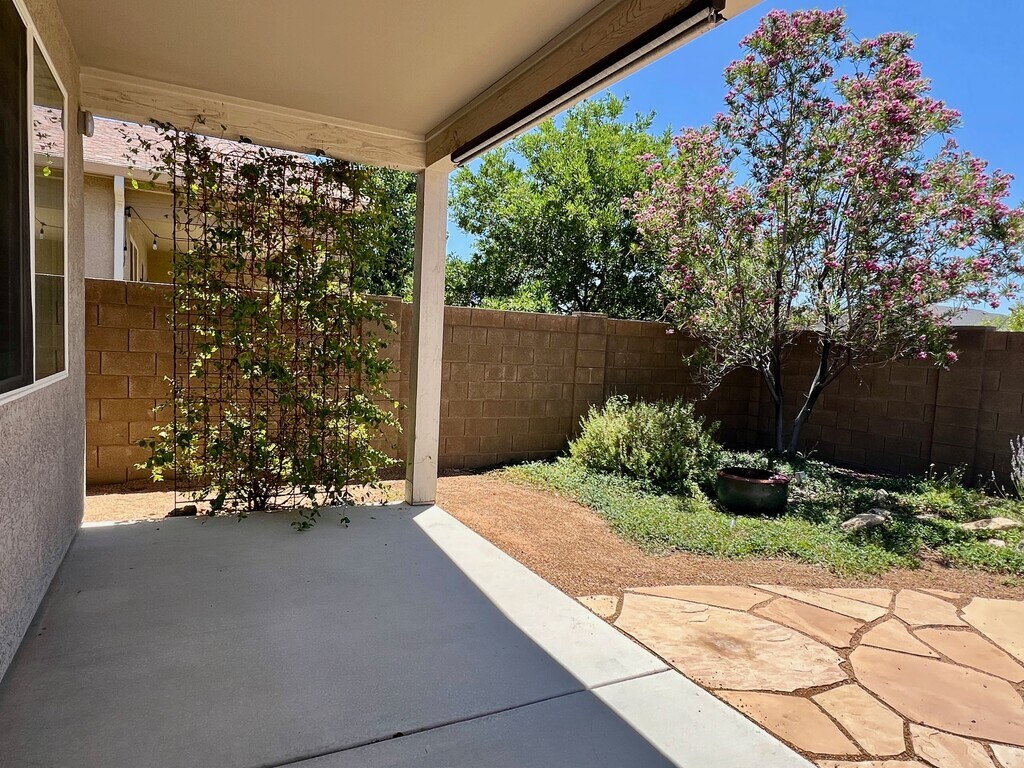 Clean and modern 2 bedroom, 2 bathroom, energy efficient home conveniently located in the tri-city area. GREAT LOCATION. Shopping, dining, schools, and parks nearby. Close proximity to walking and biking trails. Less than 4 miles from Willow Lake and Watson Lake. Less than 10 miles from historic downtown Prescott and Prescott Valley Entertainment District. FUNCTIONAL OPEN FLOORPLAN. AMPLE STORAGE. Primary bedroom easily fits a King-sized bed, has ensuite bathroom with large vanity, and spacious walk-in closet and linen closet for additional storage. Kitchen is equipped with quartz countertops, stainless steel appliances including dishwasher, oversized walk-in pantry, and large island for food preparation and entertaining. The great room includes upgrades such as a gas fireplace to keep warm and offset utility costs during cooler months. Dedicated laundry room includes a front load, large capactiy LG washer and gas dryer. Both are set on pedestals to increase height for added comfort and ease of use. Attached 2-car garage offers covered parking and additional storage. Driveway space can accommodate 2 additional vehicles. PRIVATE OUTDOOR SPACE. Pet-friendly backyard is fully-fenced and features a covered patio, water fountain, and mature landscaping for privacy. UPGRADED AND MOVE-IN READY Tenants will enjoy this well-maintained, upgraged home with fresh paint, new carpet, and ceiling fans installed in every room. Window treatments and shower curtains ensure a smooth transition to living in the home. Added amenities like a whole-house soft-water system provide luxury comfort. Clean and move-in ready! Property is unfurnished. Any pictured furniture/decor is for staging purposes only. Please contact owner via email for questions or to schedule an in-person tour. ADDITIONAL INFORMATION. Property is located in the Saddlewood community of Deep Well Ranch. Tenants must agree to Saddlewood CC&Rs (HOA). Tenant is responsible for electric and gas utilities. Owner will pay water, sewer, trash, and HOA dues. Terms: Non-smoking/non-vaping premises. Pet policy: up to 2 dogs allowed. Sorry, no cats. Additional pet deposit and fees apply. Renters insurance is required. 12-month lease. Inquiries regarding shorter lease terms will be reviewed on a case-by-case basis.