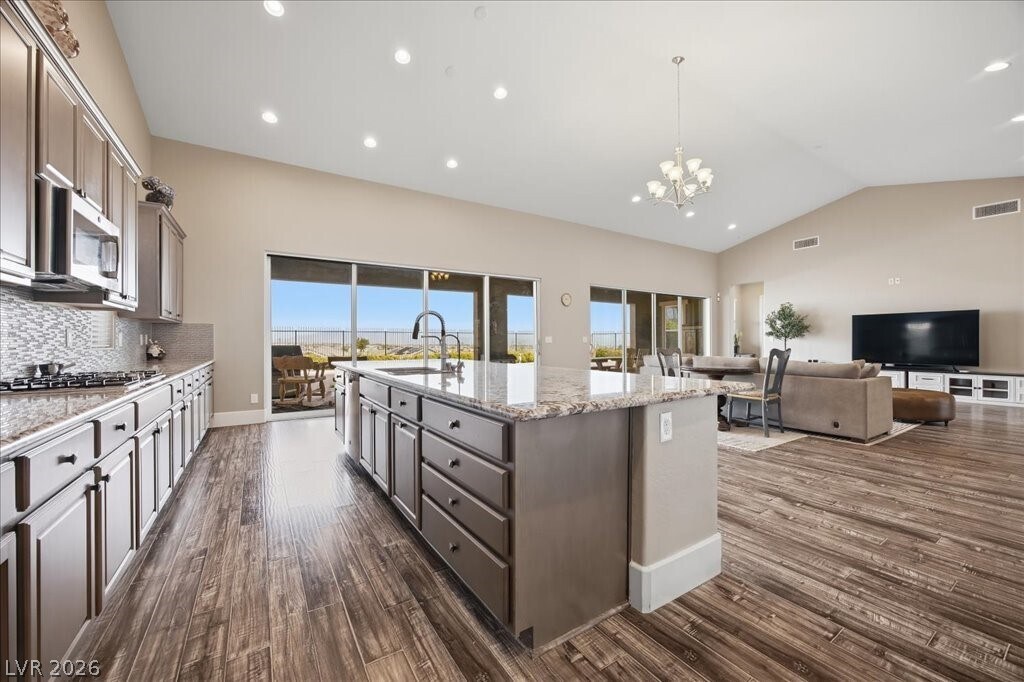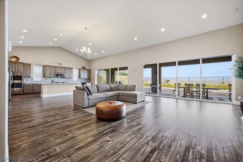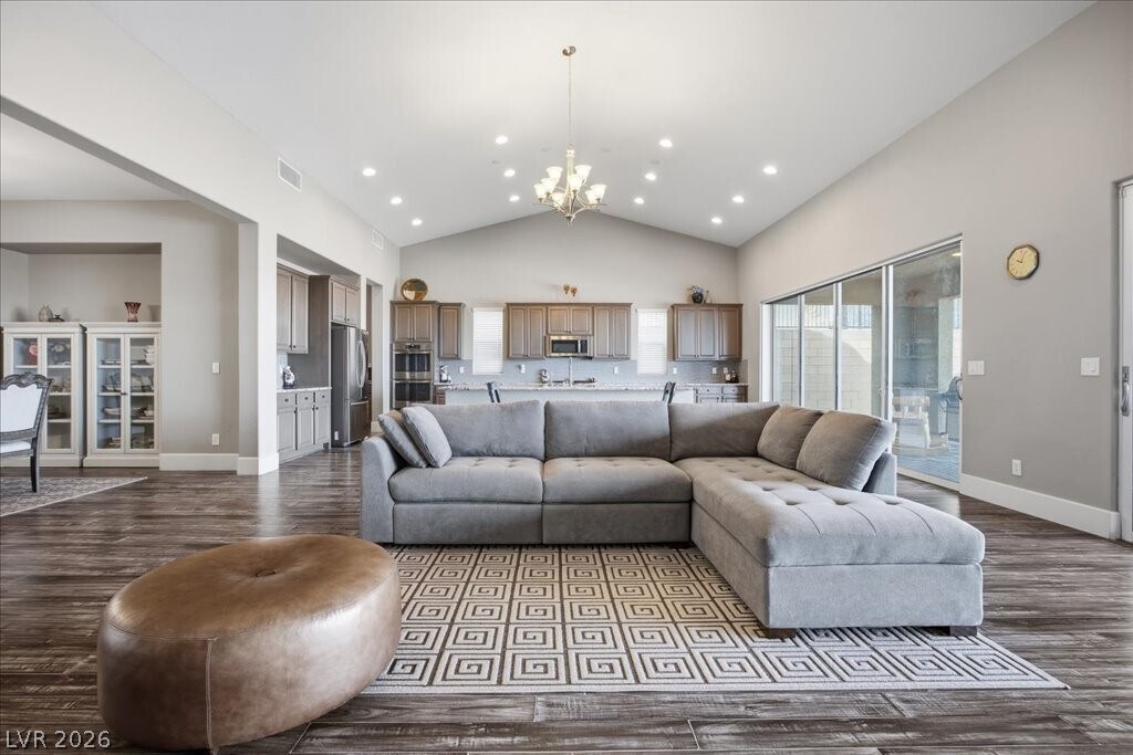 Located in the Highland Hills community, this meticulously maintained single-story home combines modern comfort with some of the best views in the neighborhood. Spanning nearly 3,500 square feet, the open layout is anchored by a spacious living area featuring vaulted shiplap ceilings and stunning wood-plank tile flooring, creating an atmosphere that is both warm and refined. The kitchen is designed for hosting, flowing seamlessly into the dining and family spaces. The home also features a 3-car garage and an expansive back yard, offering a rare sense of privacy and a front-row seat to the surrounding landscape. Discover the balanced sense of space and scenery that defines this Highland Hills retreat.
