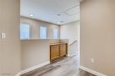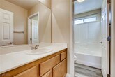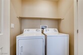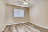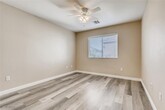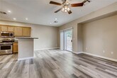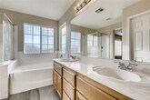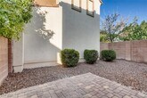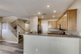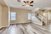Welcome to this 3-bedroom, 2.5-bathroom home with 1,505 sq ft in a gated Northeast Las Vegas community near parks, shopping, schools, casinos, and highways. The open floor plan includes a living room with carpet, blinds, and a ceiling fan, a dining area with recessed lighting and sliding doors, and a kitchen with granite counters, a breakfast bar, and appliances. The entry and main areas are tiled, with a guest bathroom nearby. Upstairs offers a laundry area with washer and dryer and three bedrooms. The primary suite features a ceiling fan, walk-in closet, and en-suite with dual sinks, a garden tub, walk-in shower, and private water closet. Two bedrooms have ceiling fans and blinds and share a full bathroom with a tub/shower combo. Additional features include an attached 2-car garage with direct access and a private backyard with a cobblestone patio and desert landscaping—ideal for relaxing or entertaining.