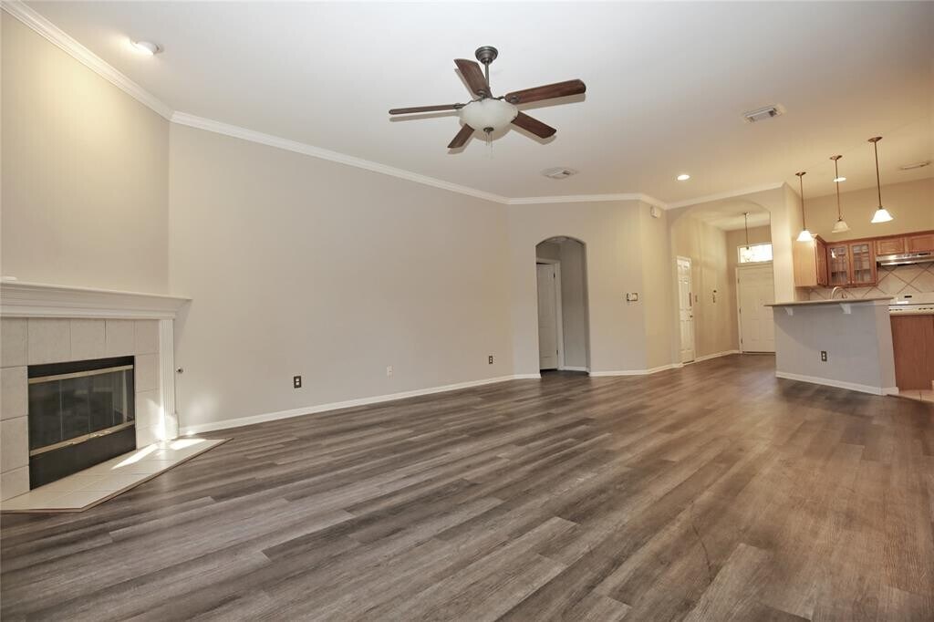 Beautiful upgraded single-story home of 1868 sqft. New hard floors. No carpet. High ceilings. Silestone countertop. Master bath with silestone double vanity, walk-in shower, and walk-in closet. Front and back storm doors. Ceiling fans throughout. Large open family room. Spacious bedrooms. Breakfast nook in Kitchen. The big formal dining room may be used as an office. Beautiful backyard with green belt (no neighbor behind). Storage shed. Refrigerator provided. Laundry with washer/dryer hookups (no machines). Close to 183 and 183A. Minutes to shopping and entertainment (Costco, Wholefood, HEB Center...), Leander ISD