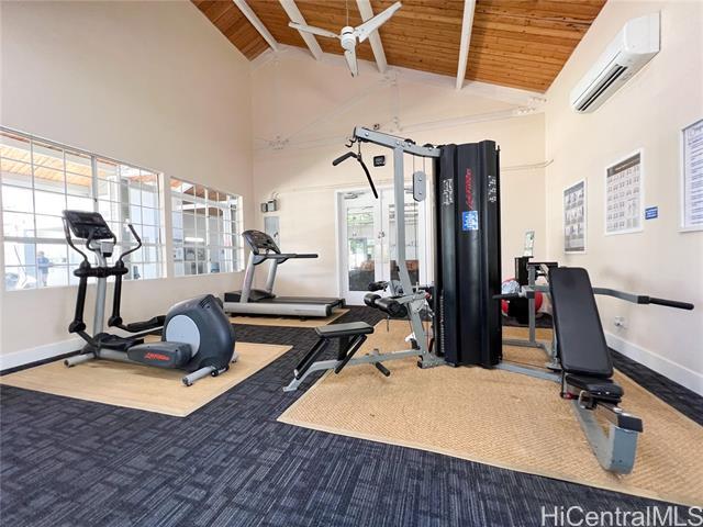 Charming, 717 SQ FT, 2 bed/ 1 bath/ 1 assigned covered parking townhome is available now. Upstairs unit features: window AC units, large lanai, carpet, recently upgraded kitchen cabinets and countertops, recently upgraded bathroom vanity, washer & dryer in unit. This townhome is in the desirable gated community called Crosspointe. Amenities include: swimming pool, jacuzzi, exercise room, BBQ, recreation area, sand volleyball court, playground, resident manager, 24-hour security, visitor parking, and more. Conveniently located near Salt Lake Shopping Center, Pearl Harbor, Hickam, Tripler Army Medical Center, restaurants, groceries, freeway access and much more. Rent includes basic cable, internet, water, sewer, trash. Tenant pays for electricity and gas. No pet, no smoking. Renters insurance is required. $25 non-refundable application fee per adult applicant.