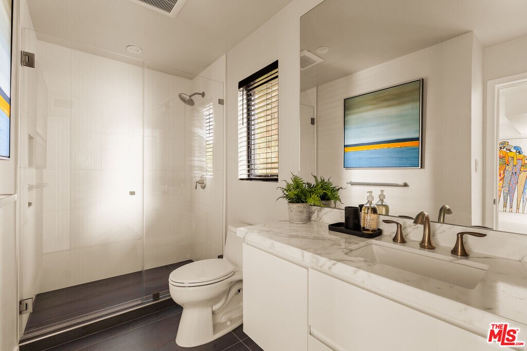 Completely rebuilt from the studs and reimagined with a contemporary coastal sensibility, this three-bedroom, two-and-a-half bath fully furnished home captures light, volume, and Venice's indoor-outdoor rhythm at every turn. The entry foyer opens into a formal living room with vaulted ceilings and a fireplace, framed by large picture windows that wash the space in daylight. Just above, a formal dining room overlooks the living area from a secondary level, positioned beside the kitchen for an effortless flow when entertaining. The kitchen is both streamlined and warm, outfitted with top-tier appliances, clean-lined cabinetry, and a bespoke bar nook. A cozy family room adds another comfortable space to unwind, while the powder room features curated wall treatments and a stone sink that elevate the everyday. Upstairs, the primary suite offers a private balcony, custom built-ins, and a serene bath with a soaking tub set beneath massive skylights, a marble dual vanity, and a glass-enclosed shower. Two additional bedrooms on this level provide generous space and natural light. Crowning the home is an expansive rooftop deck designed as its own destination, complete with multiple lounge zones, a fire pit, outdoor kitchen with BBQ, dining area, and sweeping 360-degree views of the city and mountains - an unparalleled extension of Venice living. Additional features include two private garage parking spaces behind automatic gates and a prime location moments from the neighborhood's best dining, boutiques, and nightlife. Thoughtfully rebuilt and finished throughout, the home blends comfort, style, and coastal energy in a way that feels unmistakably Venice. MLS# 26637637