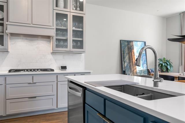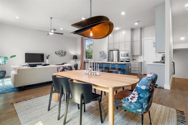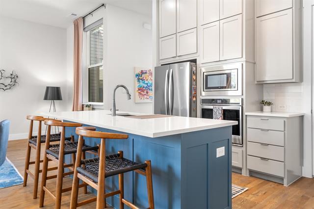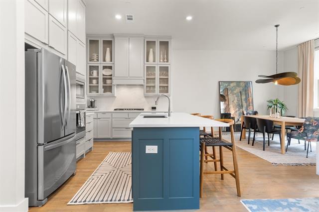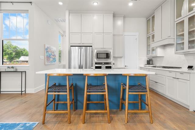 Captivating luxury 3-story condo in a newer boutique development by award-winning Centre Living Homes, ideally located in the heart of North Oak Cliff and the King’s Highway Conservation District—one of Dallas’ most sought-after areas. Enjoy unbeatable access to the Bishop Arts District, Davis Street dining & shopping, Kidd Springs Aquatic Center, Coombs Crk Trl, Twelve Hills Nature Center & Downtown Dallas just minutes away. Designed for modern living & entertaining, this upscale home features designer finishes, smart home technology & open-concept layout with 11-foot ceilings on the main living level. A welcoming covered front porch leads to an expansive first-floor entry with stained concrete floors, a spacious flex sitting area & a mudroom with built-in bench & cubbies. Upstairs, wood flooring runs thru levels 2 & 3 with no carpet, ideal for easy maintenance & allergy-friendly living. The gourmet chef’s kitchen is the centerpiece of the home, showcasing crisp white quartz countertops, an upscale Whirlpool appliance pkg, double-height cabinetry, walk-in pantry, island-breakfast bar & a 5-burner 48-inch gas cooktop. The kitchen flows seamlessly into the living & dining areas, creating the perfect space for hosting or relaxing in style. The 3rd level offers private bedroom suites, each with a full bath & walk-in closet. The luxurious primary suite features a spa-inspired bath with an oversized marble shower, 2 shower heads, dual-sink vanity & two WICs. The secondary suite includes a beautifully appointed bath with subway tile surround, & private walk-in closet. The laundry room is conveniently located on the same level as the bedrooms. Step outside to enjoy a private patio & yard with board-on-board fencing, plus a two-car garage equipped with a 220V outlet for EV charging. Lease includes kitchen appliances, washer, dryer, alarm system with doorbell camera, and water service. Rarely does a home combine luxury, location, and lifestyle this seamlessly. Welcome home!