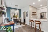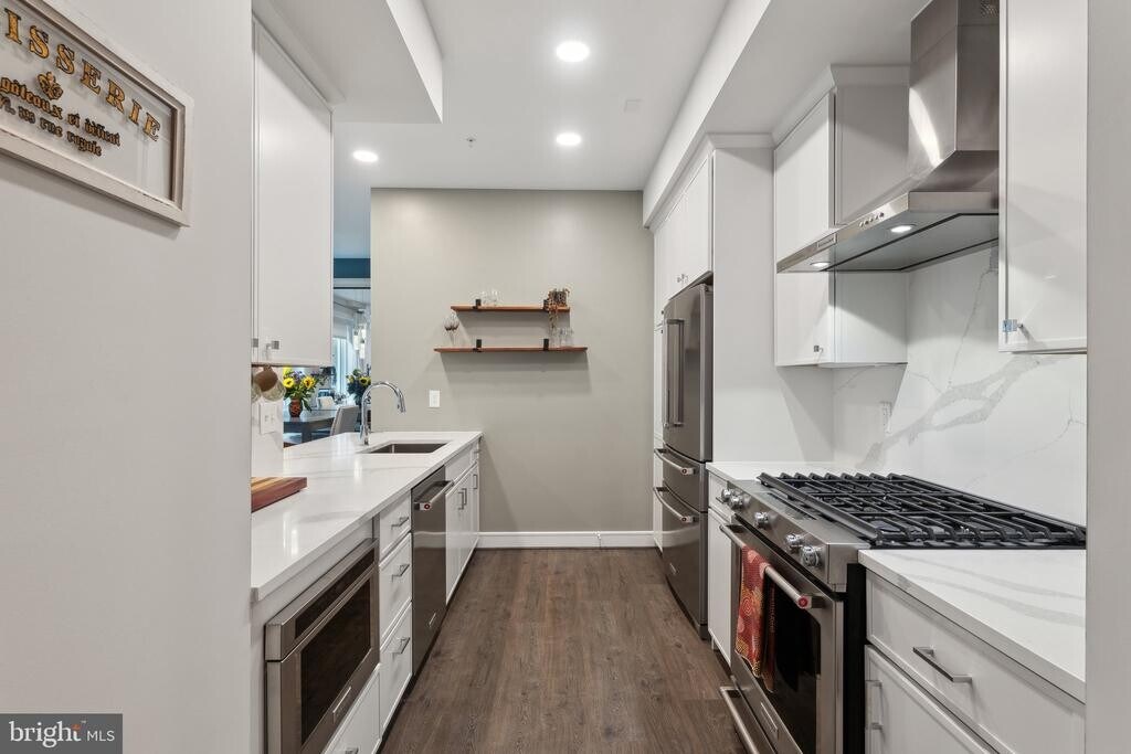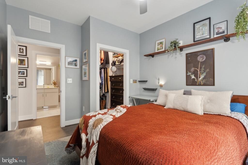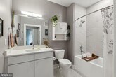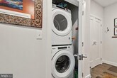 Discover modern living in this bright and spacious 1-bedroom + den condo, with secure garage parking, ideally located in North Old Town Alexandria. This stylish home features 9-foot ceilings, upgraded lighting, ceiling fans, 6-foot windows with shades throughout and an open layout that combines comfort and sophistication. The gourmet kitchen showcases Carrara Morro countertops, premium KitchenAid appliances, and generous prep space—perfect for both everyday cooking and entertaining. A designer mantel with an electric fireplace adds warmth and charm to the living area and the den offers flexible space for a home office, guest room, or studio. The bedroom features custom closets and a ceiling fan with adjustable settings and remote. The spa-inspired bathroom includes sleek finishes and a deep soaking tub. Additional highlights include a welcoming foyer, custom closets, upgraded lighting with dimmers, and full-size stackable washer/dryer. Residents enjoy high end amenities, including state-of-the-art gym, pet spa, bike storage, a spacious community room, conference rooms, library and lounge, as well as an affable concierge service. The rooftop terrace offers panoramic views of Alexandria and the DC skyline, fire tables, grills, TV and lounge seating. The condo fee includes water, gas, trash services, security and technology features, garage parking, and access to all building amenities. Your condo offers prime access to metro stations, a diverse selection of dining options, fantastic shopping, the scenic Mt. Vernon Trail, and the beautiful Potomac River. Schedule your private tour today!