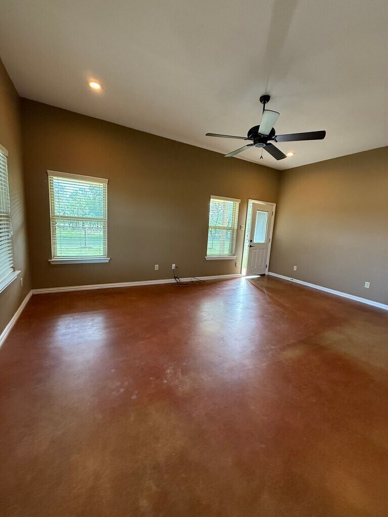 Enjoy your own slice of Texas countryside with approximately 2 acres available for use. Millsap ISD - The space is thoughtfully set up for horse lovers, featuring new pipe and top rail fencing along the driveway, with secure woven wire fencing surrounding the home. HORSE amenities include a shed with a concrete feed area, two covered stalls with attached uncovered runs, and a turnout pen. Up to two horses are welcome, with access to additional riding or grazing space. The 2-bedroom, 2-bath home offers an open floor plan designed for comfort and accessibility, including wheelchair-friendly features throughout. This has gorgeous private views!! Unwind on the spacious covered porch—perfect for enjoying quiet mornings, evening sunsets, or entertaining guests. Surrounded by mature trees and open pasture, the property offers privacy, scenic views, and a peaceful setting behind a private GATED entrance. Ideal for those seeking a quiet retreat, a small horse setup, or room to enjoy the outdoors—this rental captures the best of country living.