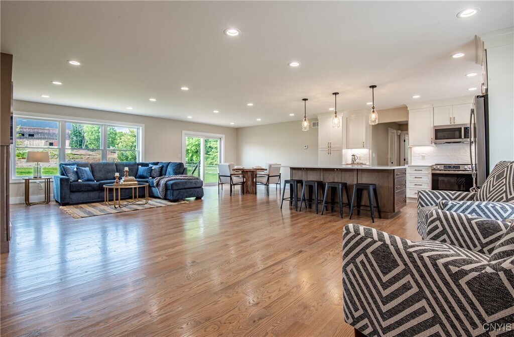 ***PRIME RENTAL!*** BRAND NEW CONSTRUCTION by Premier local builder,Jeff Petroski & Sons,known for exceptional craftsmanship & meticulous attention to detail. This thoughtfully designed home features gorgeous finishes throughout,from the on trend light fixtures to the stunning quartz island with ample seating. The open-concept layout includes a spacious dining area and a welcoming living room centered around a sleek,modern fireplace flanked by built-in cabinetry. The fully applianced kitchen features an abundance of cabinet space & counter top space,and gorgeous,brushed champagne hardware. The Primary Suite,privately situated opposite the secondary bedrooms,offers a space fit for a king ;),a walk-in closet & a well-appointed bath. Enhancing everyday convenience is a generous laundry room with utility sink & ample storage,and a practical mudroom with built-in bench & hooks. The spacious attached garage allows you to get out of the elements while you take your time unloading the groceries & the interior water source is another added benefit. The large,poured wall basement adds loads of great storage space. There is no shortage of storage space in this home! With spectacular red oak HARDWOOD FLOORS & inviting NATURAL LIGHT throughout,you will be drawn in from the moment you open the door. BRAND NEW 6 & 8 ft cedar privacy fencing! Situated north of Rome in the Town of Lee,across from Stokes Elementary,just a hop,skip & a jump to Delta Lake & Woods Valley,and under 10 minutes to Hannaford,Griffiss Business Park,RT 49 & RT 365! Excellent family-owned restaurants nearby,a hardware store,convenience store,ice cream shop... everything you need for everyday living.
