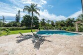 Upgraded one-story dream home in Pine Tree Estates! This true 5 bed, 4 bath pool home sits on a private, fully fenced 1-acre lot with a pavered circular driveway for 15+ cars. Features include impact windows, updated kitchen with waterfall quartz counters, island, stainless steel appliances & backsplash, oversized porcelain tile floors in main living areas, wood floors in bedrooms, shiplap ceilings, crown molding, barn doors, custom lighting & fans, and LED lighting. Spacious master suite offers a sitting area, French doors to patio, and a renovated bathroom with walk-in & built-in closets. Home also includes a 3-car garage plus 4th door entry, extended covered pavered patio, sparkling pool, and large yard perfect for entertaining. No HOA & A-rated schools!