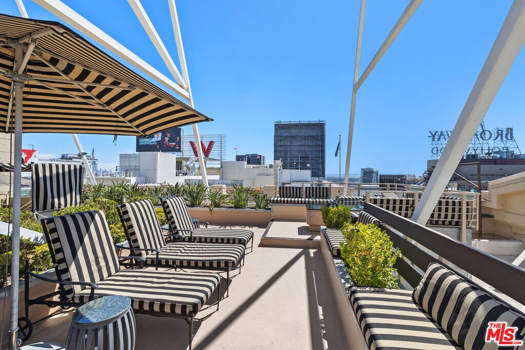 Furnished and loft-style, this vibrant 1BD/1BA home in the historic Lofts at Hollywood & Vine offers open-concept living with French windows framing dazzling views of Vine Street and the Hollywood skyline. A spacious private bedroom includes an en-suite bath with double-faucet trough sink, large walk-in shower, and separate water closet, while the sleek European kitchen features high-end Viking appliances. Modern decor - including a convertible West Elm sectional sofa - and the privacy of an end unit with only one shared wall enhance the sense of space and comfort. The building provides a 24-hour doorman, a stunning rooftop deck with panoramic city views, and a community BBQ area, all in an unbeatable location across from the Hollywood & Vine Metro, next to the Pantages Theatre, and moments from Trader Joe's and Equinox. A turnkey opportunity offering stylish urban living in one of Hollywood's most iconic buildings. MLS# 25621297