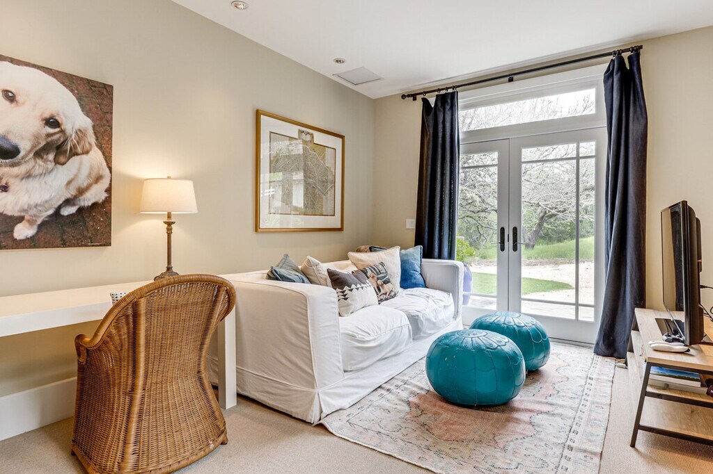 Plan the perfect extended escape and feel at home in this stunning Napa vacation rental! This spacious single-story home requires three steps to enter and features 5 bedrooms and 3.5 bathrooms. This home has something for everyone, featuring 3 living areas, 5 Smart TVs, books, board games, 2 dining tables, desks, a wine cellar, an en-suite bathroom, and a walk-in closet. The kitchen is fully equipped with a stove, 2 ovens, refrigerator, dishwasher, toaster oven, toaster, Keurig coffee maker, dishware/flatware, cooking basics, trash bags, and paper towels. Enjoy the solar-heated pool, outdoor shower, sport court with a basketball hoop, 2-hole putting green, deck, outdoor dining areas, lounge seating, umbrellas, gazebo, built-in gas grill, and outdoor pizza oven. There is also a partially enclosed barn with furniture, central air conditioning/heat, linens/towels, a hair dryer, and a washer/dryer and iron/board are available for your convenience. Spend your days wine tasting at world-renowned vineyards, indulging in gourmet dining at spots like The French Laundry, or shopping at boutiques in St. Helena and Yountville. Quiet hours are observed from 9:00 PM to 7:00 AM from Sunday to Thursday and from 10:00 PM to 7:00 AM on Friday and Saturday. This property features 2 exterior security cameras: 1 camera is located in front of the home facing the front entrance, and 1 camera is located on the deck facing the entire deck and part of the pool. The cameras are outward facing and do not look into interior spaces and will continuously record video and sound while guests are in residence. [SI]