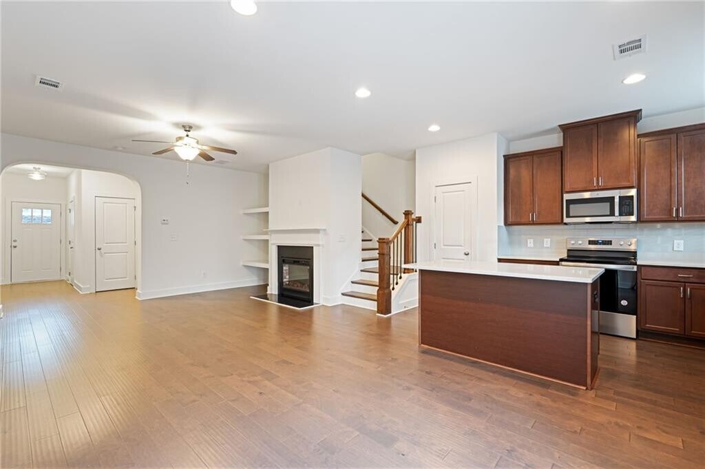 This beautifully designed townhome offers an abundance of natural light throughout its open concept floor plan. The home features 3 bedrooms,2.5 bathrooms,a 1-car garage,and a driveway accommodating up to 2 cars. The interior boasts elegant stone countertops,a gorgeous designer backsplash,stunning dark cabinets with silver accents,and stainless steel appliances. Enjoy the convenience of an included washer and dryer on the top level. The master bath is a luxurious retreat with a separate tub and shower,double vanity,and a spacious walk-in closet. The additional bedrooms are generously sized. This home is all hardwood flooring,adding to its charm and easy maintenance. The fully fenced yard is perfect for entertaining,and lawn care is maintained by the HOA. Located in a beautiful new community in Stonecrest,you’ll be near shopping,grocery stores,Stone Mountain,and I-20. Plus,the home is right across the street from Redan Recreation Center. Don’t miss out on this stunning rental opportunity!
