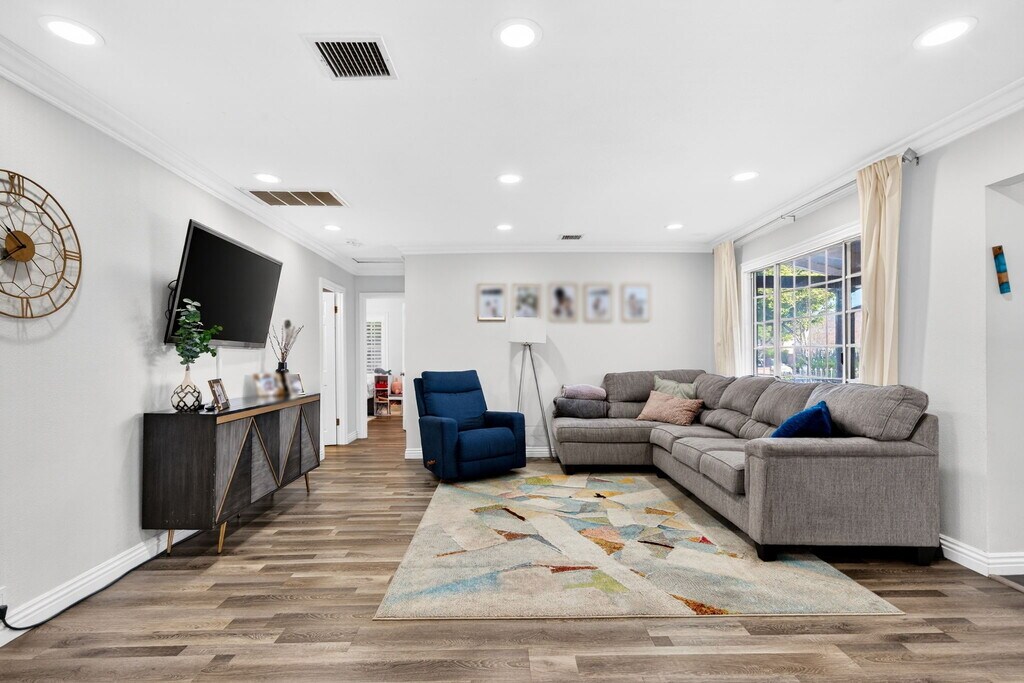 This charming, cozy 4-bedroom, 3-bathroom home is nestled in a peaceful, quiet neighborhood. The master bedroom, located on its own private upstairs floor, features an attached half-bedroom perfect for a nursery or small office. A bright sunroom provides additional living space, ideal for a playroom, reading nook, or relaxation area. The master suite is complete with an ensuite bathroom, and the guest suite boasts its own ensuite bath, offering privacy and comfort for family or visitors. Outside, enjoy the serene backyard with a hot tub perfect for unwinding after a long day. The front of the home is equipped with an EV charger, catering to electric vehicle owners. Conveniently located near Monlux School, Valley High, and Valley College, this home is an ideal spot for families. Shopping is also just a short distance away, providing easy access to all your everyday needs. With its cozy atmosphere, thoughtful layout, and modern amenities, this home offers the perfect combination of comfort, practicality, and charm in a tranquil setting.