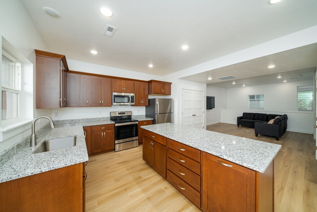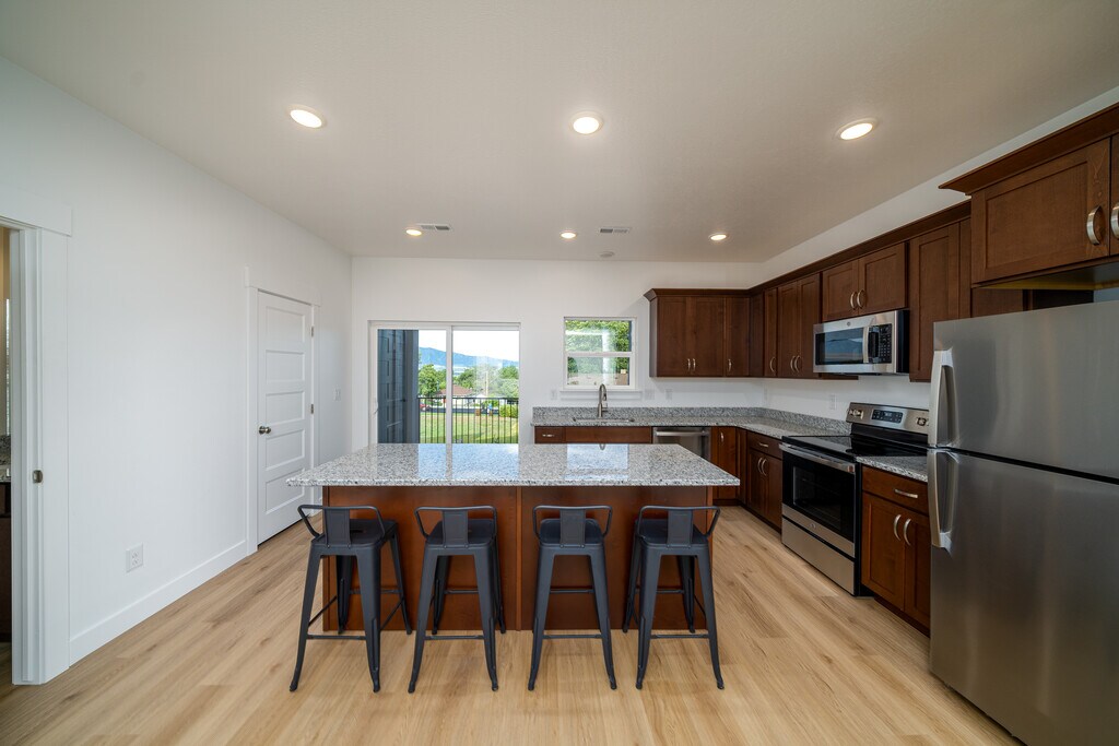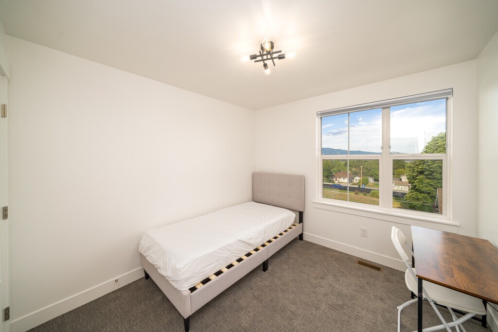 Experience the Smartest Student Housing in Logan! This is Unit 2 Bedroom 1. This is a brand new 4 bedroom 2 & 1/2 bath unit that is rented by the room. It is private bedroom, shared bathroom. Rent price listed is for the bedroom with a 12 month lease term. Rent also includes free garage parking, 1 stall per tenant, and free access to the property guest Wi-Fi.This property is a block and a half away from USU campus. You can walk to school every day. Each townhome is EV charger ready in every garage, garage parking for every tenant and lots of storage. It is fully furnished with the best. Granite countertops, (even in the bathrooms) oversized walk in glass door showers, large private bedrooms, the full second floor is living and kitchen space to enjoy with friends. It has a Doorbell Camera, Smart Lock, Smart Garage Door, etc. It is the smartest property for the smartest students.It is fully furnished with beds, couches, wall mounted TV's with soundbars and all appliances, High Speed Internet through Comcast. It has Washers and Dryers in each unit. Basically all you need to do is bring your linens and dishes, and everything else is enjoy the smartest student housing in Logan.