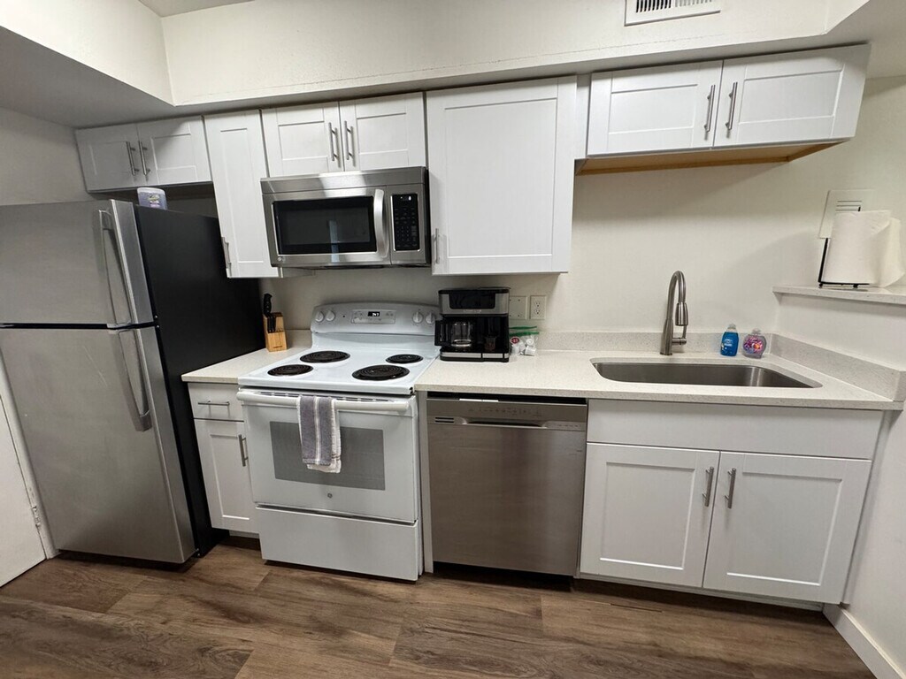 Prime Location! Conveniently located near UAMS Hospital, I-630, and downtown Little Rock, this apartment is perfect for work, school, or leisure visits. Recently remodeled, it features modern upgrades, including a new kitchen, bathroom, flooring, and more. The open-concept lower-level design boasts quartz countertops in the kitchen and bathroom. Enjoy the convenience of free parking in this pet-friendly building. The guest will have access to all the amenities that include a bedroom with a queen bed, USB lamps, and a table for added convenience for your wireless devices. The dedicated workspace is in a private room. The bathroom features bath amenities with a full tub. The open-concept kitchen looks into the living area, and the bath and bedroom are located on the 2nd level. The living room is equipped with a 55" Roku TV, perfect for movie time. Free parking is available on the premises, and the apartment offers free 1G MBPS Wi-Fi. Guests are welcome to bring a maximum of two animals only, with additional or unauthorized animals incurring a charge of $150 per pet. Pet owners are responsible for tidying up the property after taking their animals outdoors, with a $50 fee added to reservations that require additional cleaning outside after animals. No smoking or vaping of any kind is allowed inside the unit or garage, with an additional cleaning fee of $500 per incident. Quiet hours are observed from 9 PM to 7 AM daily to ensure a peaceful environment for all guests and neighbors. The building is located directly across from UAMS hospital and the emergency entrance. Nearby bus stops are just a 4-minute walk away. For exploring, drive times to popular destinations include pharmacies like Walgreens at 2 minutes (3 miles away), supermarkets like Target at 5 minutes (5 miles away), and fast food options less than 5 miles away. The Bill and Hillary Clinton National Airport is 15 minutes (7 miles) away, Big Dam Bridge is 15 minutes (7 miles away), Little Rock Zoo is 5 minutes (1 mile away), and War Memorial Stadium is 4 minutes away. You will have access to the entire unit and can effortlessly enter via smart lock, with a code provided 24-48 hours prior to your arrival. The building has some entrance steps to walk up from the parking lot. The building is located directly across from UAMS hospital and the emergency entrance, so expect to hear ambulance sirens randomly. While it's not a big issue for most, we recommend earplugs for sound-sensitive guests. Includes dedicated workspaces in a private room. A laptop computer is not included. We have a few units of the same layout and floor plan, hence similar pictures are in multiple listings. [SI]