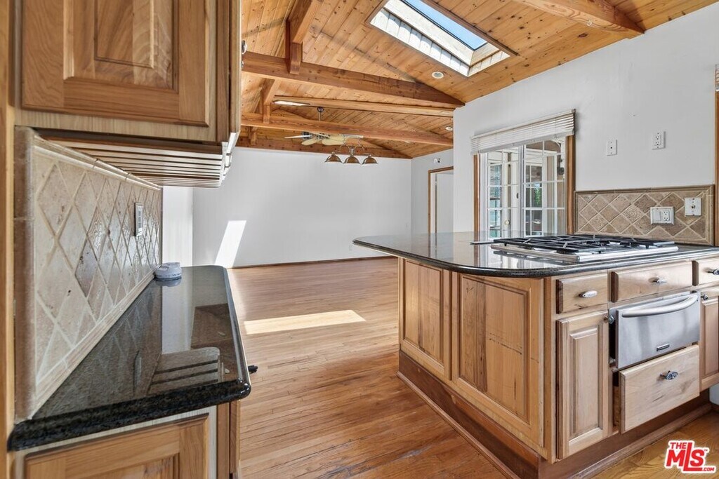 Welcome to a beautifully maintained residence in one of Burbank's most sought-after hillside neighborhoods, where timeless design, thoughtful details, and sweeping mountain views come together to create an exceptional living experience. From the moment you arrive, the lush, manicured landscaping and inviting entryway set a warm and elegant tone. Inside, you're greeted by striking stone flooring that transitions into rich hardwood floors that flow seamlessly throughout the home, with expansive windows throughout allowing an abundance of natural light to fill every space. To the right, the spacious living room offers a refined yet comfortable setting, centered around a stunning stone-accented fireplace, an ideal space to gather, relax, and enjoy cozy evenings at home. Continuing through the home, a versatile office space features custom built-ins and its own private bathroom, offering the perfect blend of functionality and style for working from home or hosting guests. The kitchen is beautifully appointed with marble countertops, warm wood cabinetry, a double oven, and a cohesive design that complements the home's timeless aesthetic, while just off the kitchen you'll find a separate dedicated laundry area, thoughtfully tucked away for added convenience. Expansive glass doors open to a generous backyard designed for effortless indoor-outdoor living, featuring a built-in barbecue, ample space for entertaining, and the perfect setting to relax or host gatherings. The primary suite serves as a private retreat with direct backyard access, a spacious closet with built-ins, and a spa-inspired bathroom showcasing elegant stone finishes from floor to ceiling, a luxurious walk-in shower, and gold-accented fixtures that create a sophisticated, modern feel. Additional bedrooms are generously sized and thoughtfully appointed, each with built-in closet features and complemented by a well-designed hall bath that continues the home's refined aesthetic. Set in a premier Burbank hillside location, this home offers a rare combination of privacy, views, and convenience, making it an ideal opportunity to enjoy elevated living in one of the city's most desirable communities. MLS# 26686057
