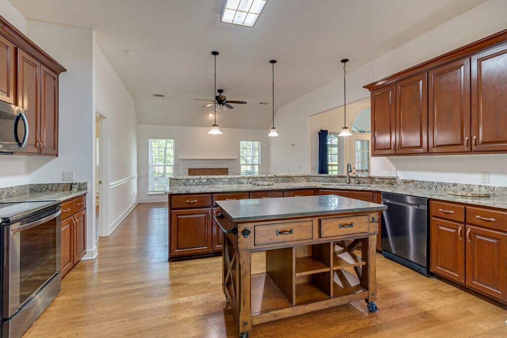 Freshly painted, 4 bedroom, 2 bathroom home located in the Waterford Landing community. Hardwood floors throughout, large family room with fireplace. Kitchen features stainless steel appliances and granite countertops and plenty of storage. Primary bedroom has en suite bathroom with double vanity and a large walk in shower. Enjoy the shaded, fenced in backyard that overlooks the greenbelt and two car attached garage. Easy access to the new Richmond Hill High School and 95!
