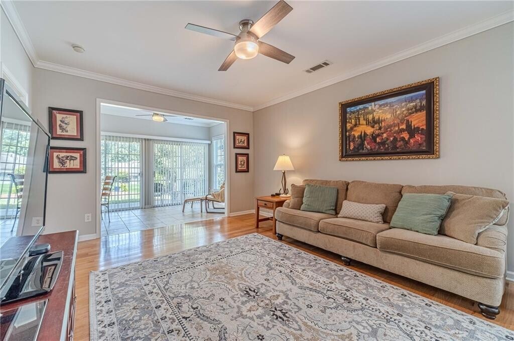 Mint condition,no carpet. 2bedroom,2 bath,with sunroom,eat-in kitchen with stainless steel appliances,granite counter tops,and pantry. Washer and dryer in kitchen closet. 2 car garage,covered front porch and rear lanai overlooking open landscaped yards -very pretty. Large walk in closet in primary bedroom. Very popular 55+ community with large clubhouse,huge fitness center,library,meeting and craft rooms,ballroom,indoor and outdoor pools and hot tubs. pickleball,bocce,tennis and softball venues. Hundreds of clubs and interest groups. Rent includes HOA dues,use off all amenities and lawn care. Close to dining,shopping and medical facilities. Pets considered on case by case basis. Exclusive Gated community. Owner/landlord is licensed GA Real estate agent.Available December 1,2025. You will need owner permission or a real estate license to enter gated community.