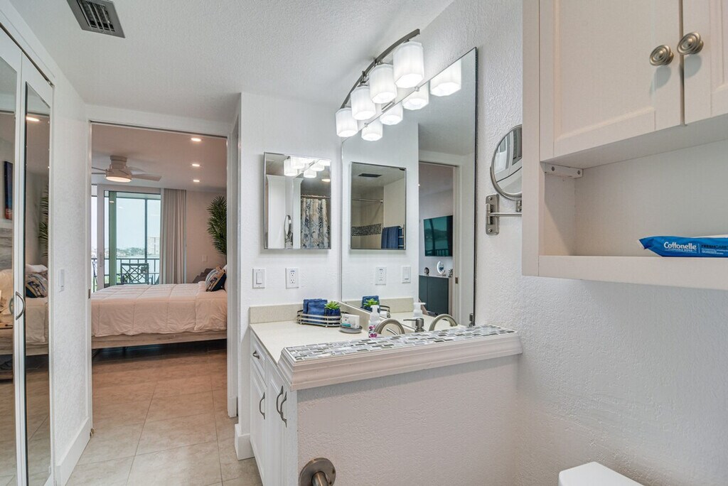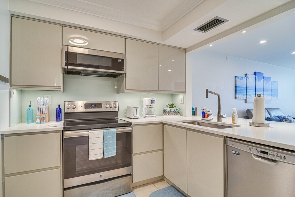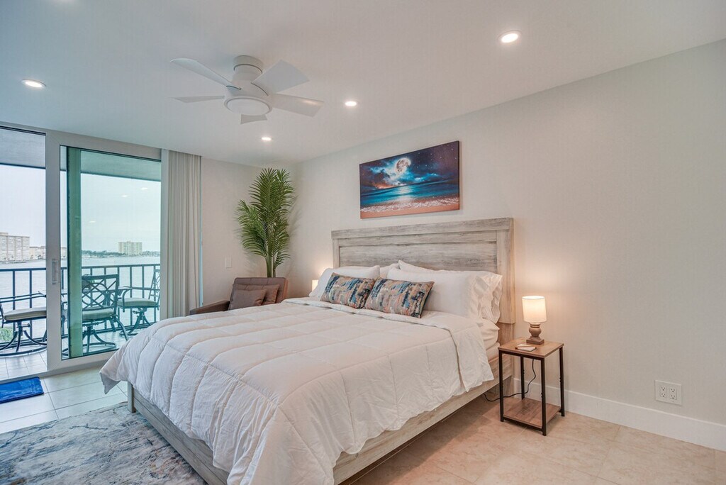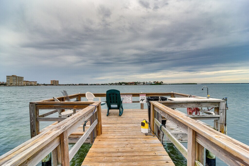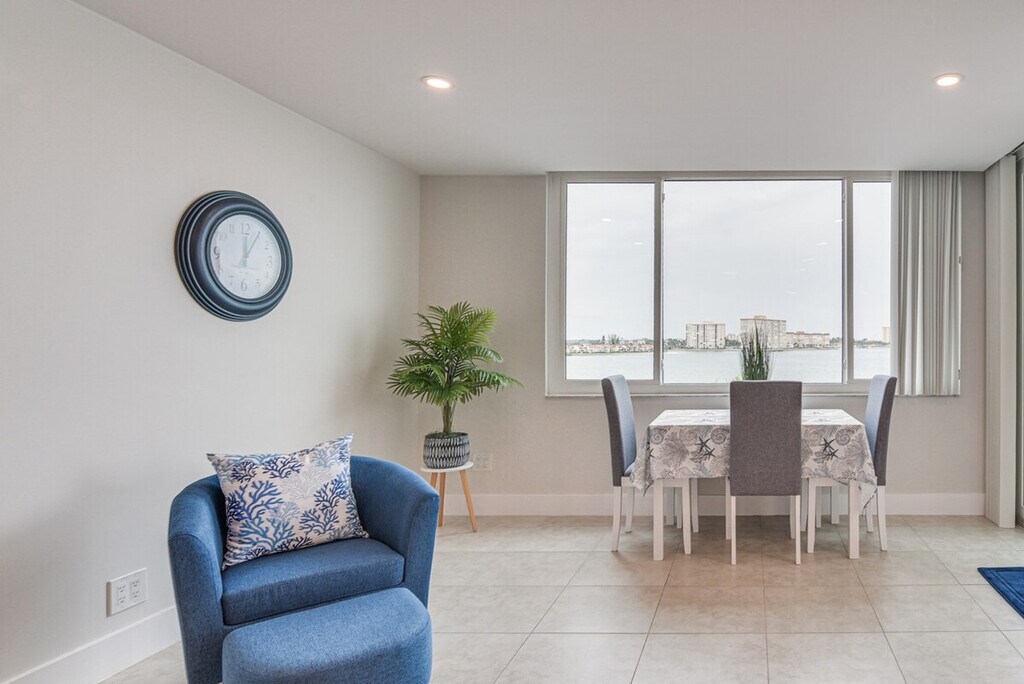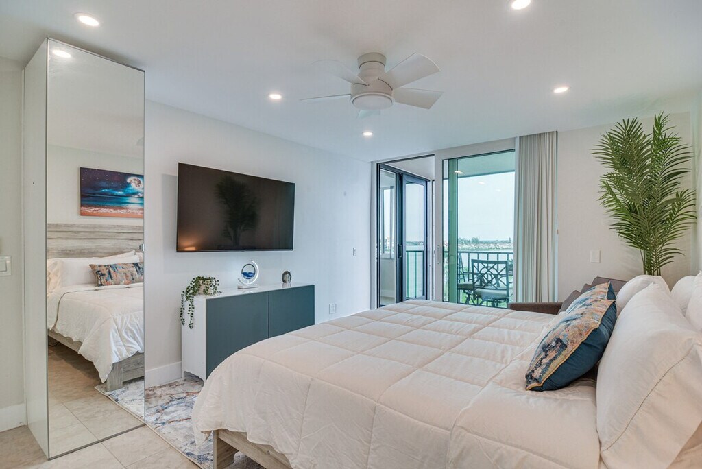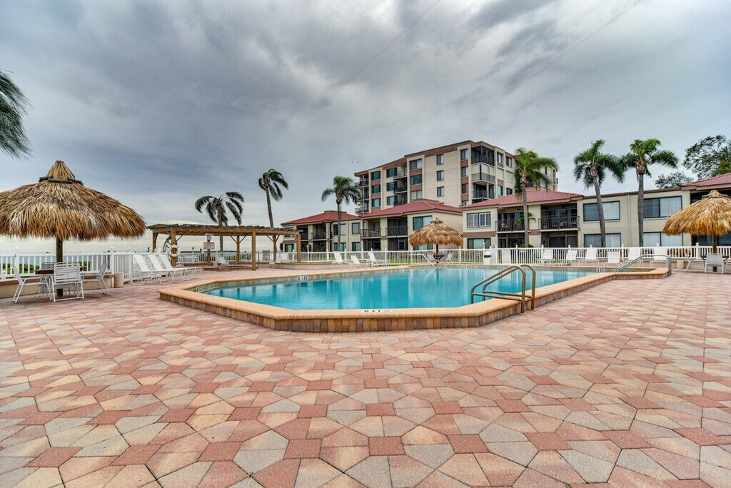 Feel at home in this stylish 1-bedroom condo in Saint Petersburg, offering breathtaking views of Boca Ciega Bay from the screened balcony. Located on the 5th floor with step-free access via elevator, this single-story unit provides a relaxing coastal retreat. This condo features a fully equipped kitchen with a refrigerator, coffee maker, stove/oven, microwave, dishwasher, toaster, dishware, flatware, and cooking basics. Enjoy indoor entertainment with smart TVs, board games, and books. Additional amenities include a dining table, walk-in closet, en-suite bathroom with a walk-in shower, ceiling fans, in-unit washer and dryer with laundry detergent, iron/board, towels/linens, trash bags, paper towels, complimentary toiletries, a hair dryer, and a beach umbrella. Guests have access to a reserved parking spot for one vehicle, with additional guest parking available on a first-come, first-served basis. A pack ‘n Play is also available. Located minutes from beautiful beaches and popular city sights, this condo is ideally situated to explore Fort De Soto Park, relax on St. Pete Beach, or tour exhibits at the Dali. It is also located 3 miles from St. Pete Beach and 8 miles from Tropicana Field. Quiet hours are observed from 10:00 PM to 9:00 AM. No smoking, pets, events, parties, or large gatherings are allowed. Guests must be at least 25 years old to book. Community amenities include an outdoor pool and spa, gazebo, fitness/game room with pool and ping pong tables, and a fishing dock. [SI]