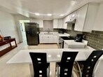 This waterfront property features a remodeled kitchen, 3 bedrooms, 1 bathroom, and ample outdoor space. Situated on approximately 18,000 sq ft, it offers plenty of room to park multiple cars, boats, or an RV. The property includes a boat ramp, lift, and deck along the canal from Lake Okeechobee, perfect for backyard fishing. Fully fenced for privacy, it also includes a smaller rental house at the back. No HOA with quick approval available.