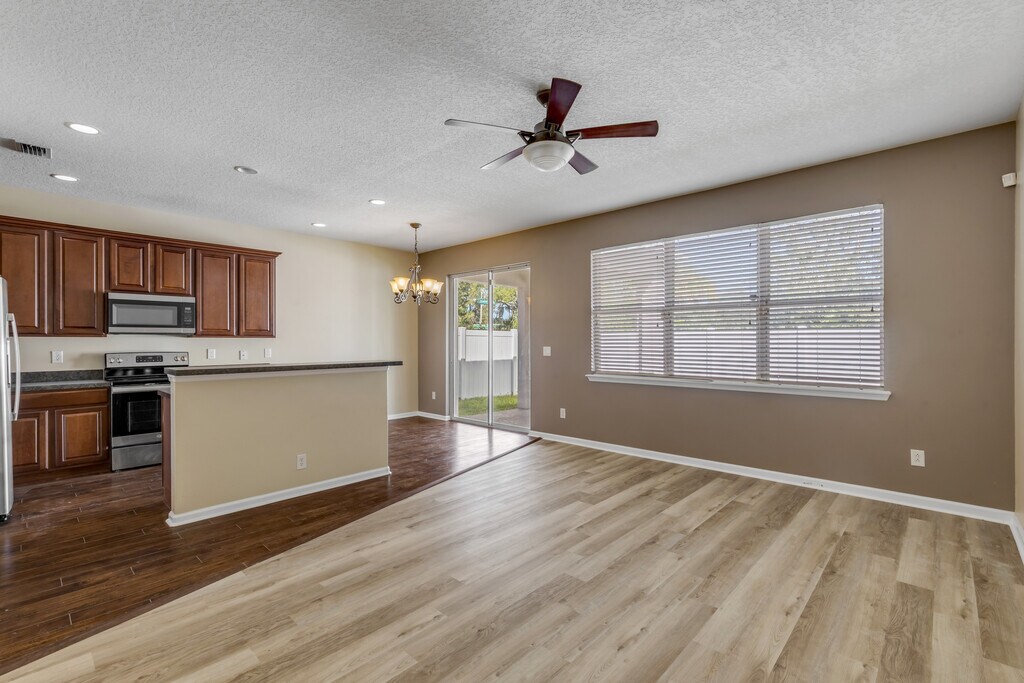Welcome to this inviting 3-bedroom, 2-bath home located in the desirable community of Isles of Sugar Mill in New Smyrna Beach. This move-in ready home offers a thoughtful split floor plan, open-concept living, and a fully fenced backyard perfect for both relaxation and entertaining. Inside, you'll find a bright living area with beautiful wood plank flooring, an open kitchen with plenty of counter space, and a dining area that flows seamlessly to the covered patio. The spacious primary suite includes a walk-in closet and private bath, while the two additional bedrooms are tucked away on the opposite side for added privacy. A versatile bonus room or den provides space for a home office, library, or guest area. Enjoy your morning coffee on the covered back porch, overlooking a quiet, fenced yard ideal for pets. The home also features a 2-car garage, fresh neutral paint, and well-maintained landscaping for great curb appeal. Located within a peaceful community, you'll have access to neighborhood amenities including a pool, park, and sidewalks for easy evening strolls. Conveniently close to I-95, shopping, dining, and just minutes from New Smyrna Beach's white sand shores this home combines comfort, convenience, and community living. Schedule your private showing today and experience Florida living at its best. 1 Year Lease Tenant covers all utilities First, Last & Security required upon Move-In