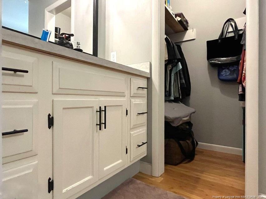 This adorable ranch style home is conveniently located near Fort Liberty, shopping and restaurants. With recent upgrades and unique charm this 3 bedroom home is sure to please. Enjoy relaxing on the front porch or entertaining on the large back deck. Walk inside to an open concept floorplan with vaulted ceilings and skylights showcasing natural lighting. The main living area is spacious and cozy with a lovely fireplace. The bright and inviting kitchen includes stainless steel appliances, an island, custom shelving and beautiful white cabinetry. The master suite is roomy and includes a private master bathroom and walk in closet. The large fully fenced in backyard offers privacy and space to entertain. This amazing home is available on January 12!