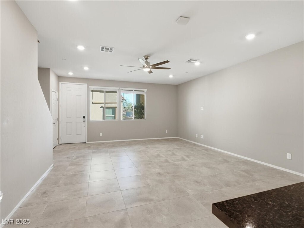 Stylish, move-in ready townhome located in the heart of Southwest Las Vegas. This modern 3-bedroom, 3-bath residence features a functional open floor plan well-designed living space. The kitchen offers crisp white cabinetry, granite countertops, and stainless steel appliances perfect for everyday living and entertaining. The spacious primary suite includes a walk-in closet and a private bath with dual sinks and quartz countertops. Additional features include a tankless water heater, dual-zone HVAC, epoxy-coated garage floor, and built-in fire sprinkler system. Situated in the gated Madori Vistas community, residents enjoy resort-style amenities including a pool, spa, BBQ area, playground, and pet park. Washer, dryer, and refrigerator are included, with water and sewer covered.Conveniently located near I-215, Durango Casino & Resort, UnCommons, IKEA, Southern Hills Hospital, shopping, dining, and schools—just minutes from Downtown Summerlin and the Las Vegas Strip.
