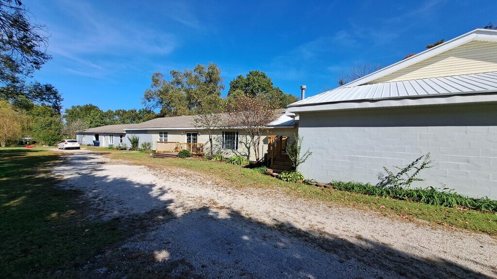 For Lease: Unique out-of-town property lying on an outer road along West 7th Street / US Route 66 just West of Joplin,MO near Galena,KS. Wonderful opportunity for a large family,multiple households or a variety of businesses. The property consists of a park-like 3.9 acre lot with an approximately 4800SF house and additional 4500SF of open space,formerly a wedding venue,usable for a variety of enterprises,from large-scale hobbies to warehouse to any of a number of business ventures. The house has 4+ bedrooms,2 1/2 baths,2 Living areas,and a large office area in addition to several other flexible use rooms. The warehouse/venue area is open and well-lit with separate entrances as well as a secure door into the house. Note: There is an apartment with attached garage attached to the far North side of the structure that is currently rented.