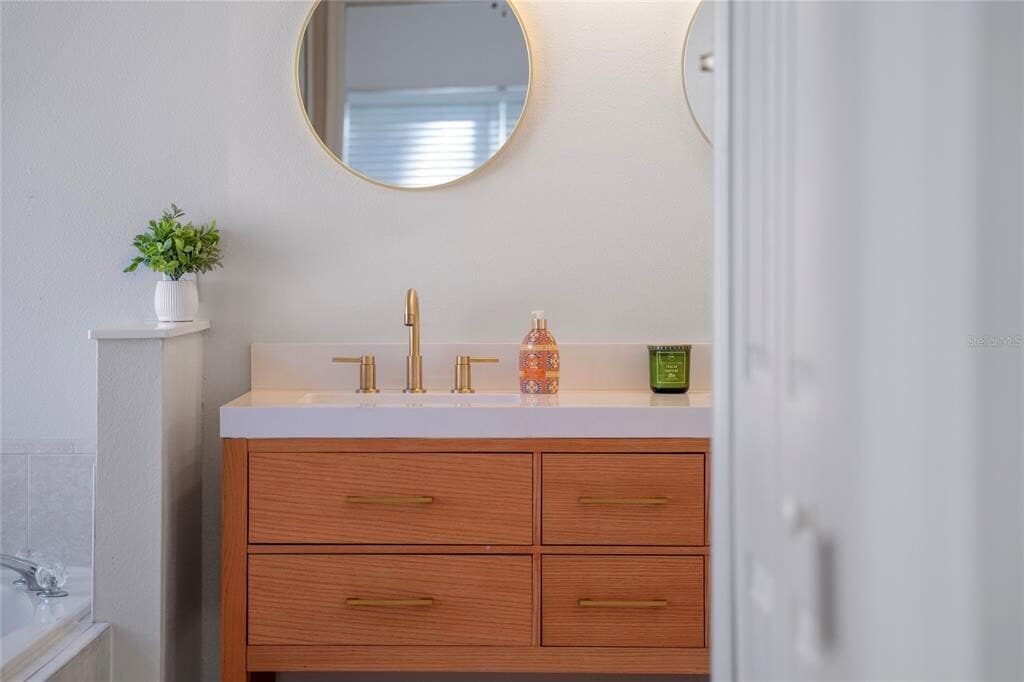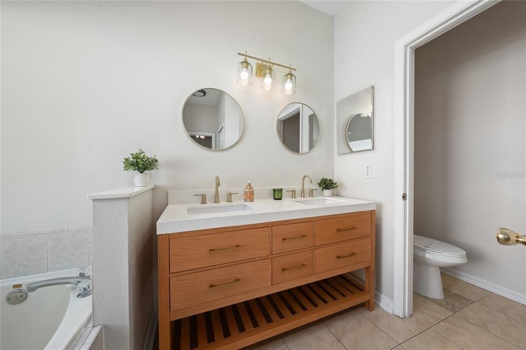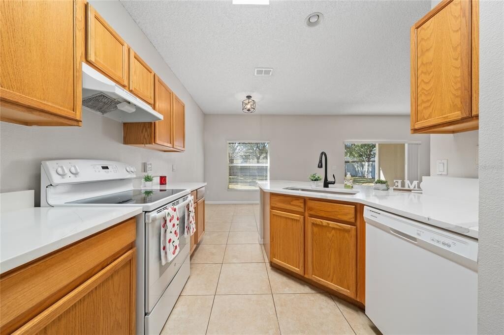 One or more photo(s) has been virtually staged. This Beauty has a Recently Updated Kitchen,NEW Quartz counter tops,and large sink. NEW Bathroom Vanities,shower enclosure in master bath and separate Roman Tub; very stylish and modern house in Amhurst at Vista Lakes area. This is a 3 Bedroom 2 bath single story house in Vista Lakes Amhurst just off Chickasaw trail. The property features an open floor plan with dining room,eat-in-kitchen,and white appliances. Washer & dryer are included in the separate laundry room off the kitchen leading into a 2 car attached garage. The open concept living,dining area has sliding glass doors leading to a covered patio and large fenced in back yard. Lawn Care is included in the rent. There is tile flooring throughout except including brand new tile in all bedrooms,and a new roof was installed. Some of the rooms include ceiling fans,including Master suite and Living room. In the master bathroom there is a separate,private commode,New Vanity and separate shower and Roman soaking tub. Great location,only minutes to the Orlando International airport,shopping,quick access to the 528 Toll Rd,and Lake Nona. Renter's Insurance is required to rent this home. A small pet will be considered on a case-by-case basis. MLS# O6380698