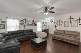 The home is conveniently situated just 3 minutes from Highway 35, offering easy access. This three-bedroom, two-bathroom house features wood-look flooring throughout. The kitchen is equipped with updated stainless-steel appliances. The property also boasts an extended back patio with a cedar cover. The house comes with a washer, dryer, and refrigerator. Perfect size and perfect layout !! Do not miss this opportunity