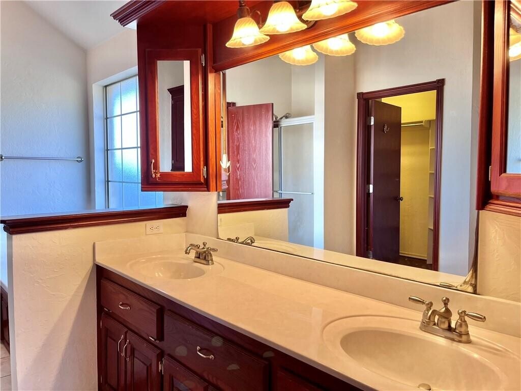Moore Public School District! Home sits on a large corner lot and has a side entry garage. The living area has a fireplace and large windows and looks into the kitchen and dining areas. The office/study is directly off of the living/entry area has French doors. Kitchen has pantry,painted cabinetry,newer stainless appliances including refrigerator & gas stove and breakfast bar. Home has a split bedroom plan. Master suite has double vanities,walk-in Australian closet and separate jetted tub and shower. Backyard is fenced and includes a storage shed (as is condition). Updated LVT wood-look flooring in living,hall,office and bedrooms. 3 car garage has storm shelter below ground. Pets ok on a case by case basis. Application fee $42/adult. Application online.