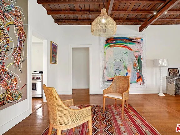 this tastefully renovated Spanish revival two-bedroom bungalow offers a mix of modern amenities and classic architectural elements, creating a cozy and stylish living space. The bungalow has been thoughtfully renovated, offering a spacious and well-appointed living room. The presence of a small den provides the convenience of a dedicated workspace for remote work, enhancing the functionality of the home. The converted garage, currently serving as an art studio, could be transformed into an ADU providing additional living space that could serve as a guesthouse, rental unit, or extended family accommodation. The highlight of the property is a large private backyard that serves as an ideal space for both entertaining and relaxation, contributing to an indoor/outdoor lifestyle that many homeowners seek.