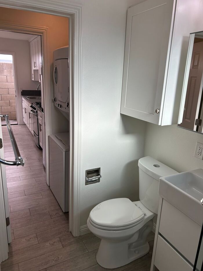 Really nice front Unit with stainless steel appliances which include a Gas Range, Microwave & Refrigerator. It has a split system heat & AC, with in-unit washer/dryer included. 1 single car garage & driveway parking, with a large front patio. Location, Location, Location as it's just a few minutes from the beach as well as downtown HB. This one won't last! This property allows self guided viewing without an appointment. Contact for details.