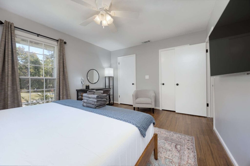 Discover this stunning home on a corner lot in a serene, safe neighborhood. Feel at home in this property that's just minutes from local amenities and boasts a lovely community park and stream right across the street. Enjoy a pool and hot tub, plus a gourmet kitchen featuring double ovens and a 5-burner induction cooktop. The kitchen opens into a spacious family room, complete with built-in cabinets and a fireplace, and equipped with a big-screen TV and sound bar. A separate living room also includes its own large-screen TV. The kitchen features a large island, quartz countertops, and stainless steel appliances. The back bedroom offers versatile use as an office. Nestled in a charming Columbus, GA neighborhood, this peaceful retreat offers the perfect balance of suburban tranquility and convenient city access. Stroll along well-kept streets in a friendly community, and unwind in nearby parks and green spaces ideal for outdoor activities and family gatherings. Just a short drive away, you'll find shopping, dining, and entertainment options. With top-rated schools and essential services close by, this location is perfect for both families and professionals seeking a welcoming, well-connected community. Discover the best of Columbus living right here! Quiet hours are between 10 PM and 7 AM. If our cleaning crew reports any signs of smoking cigarettes, vapes, e-cigs, pipes, etc. (smell, ash, etc.) in or around the home, an automatic $500 damage charge will be incurred. The same charge applies if cigarette butts are found outside of the home. If marijuana is smoked in or around the home a $500 fee will be charged, and details about the reservation may be turned over to the appropriate authorities. Parties are prohibited at the home. Other events are permitted at the home only with our prior approval. If you violate quiet hours and disturb the neighbors, your reservation will be canceled; you will be required to leave the property immediately and you will not be eligible for any refunds. You will be responsible for any damage to the home or its furnishings during your stay. Please bag all trash and place it in the bins provided. There is a $100 charge for third party trash removal if an excessive amount of trash is left at the property. Pets are not allowed on the property or inside the home. If a pet is on the property, a deep cleaning fee of $500 will be charged and guests will be required to depart immediately with no refunds given. The pool services do not take long and will not disrupt your stay. Access to the yard/pool area will be needed on service day. [SI]