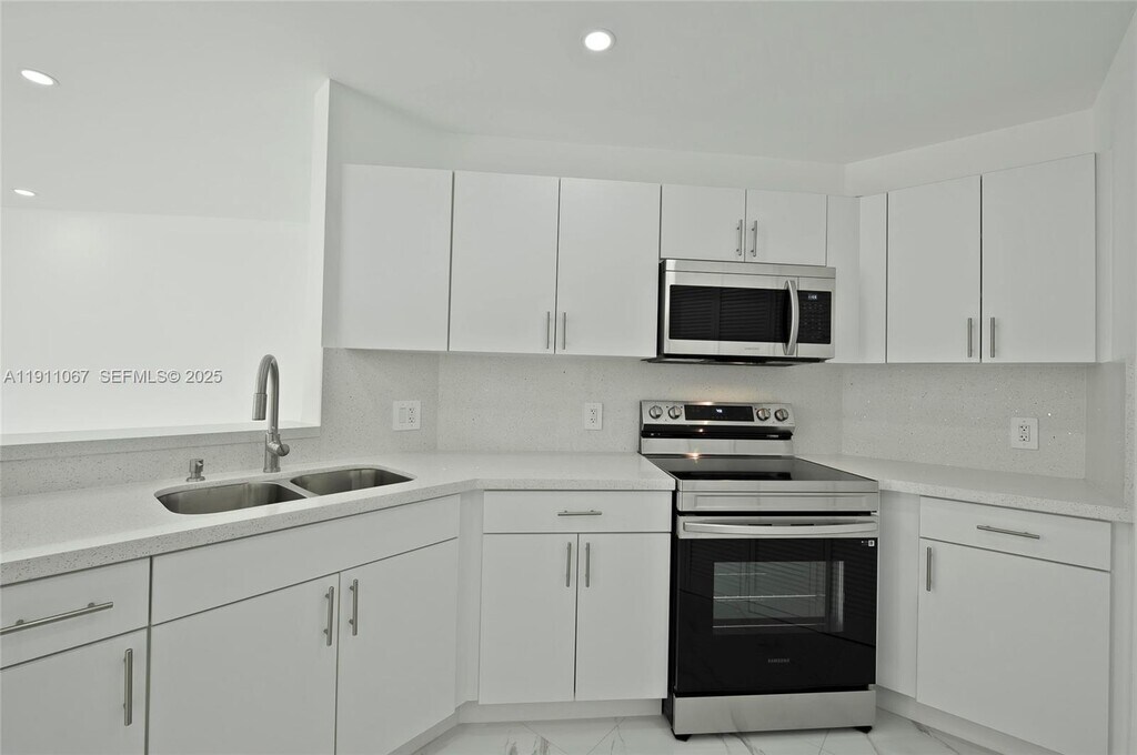 Welcome to this beautifully fully renovated 2-bedroom, 2-bath residence located in a charming, gated Mediterranean-style. This unit has all new stainless-steel appliances, brand new kitchen with white quartz counter tops, washer, dryer, AC and electric box. It has a beautiful marble flooring, and luxury porcelain tile bathrooms. It is conveniently located next to shops, restaurants, supermarkets, etc. The community has a nice Gym, pool, jacuzzi, and security patrol.