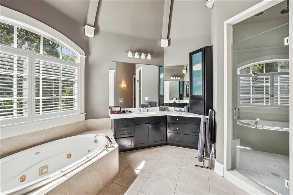 Gabby GrayLovely Aberdeen Forest filled with unique architecture at every turn. Gracious and classic all brick home. Stylish 2 story foyer, formal living room with floor to ceiling windows providing abundant natural light, renovated kitchen with huge kitchen island, tons of surrounding counter space, high end appliances and breakfast room. The kitchen opens to the family room and covered outdoor living space with fireplace. Formal dining room towards the front of the home along with a guest suite and full bath. Primary bedroom on the main level with true sitting area and access to the back deck. Primary bathroom with his and hers closets, dual vanities, soaking tub, and separate dual vanities. 2nd level is another home on its own with living room or den space, 4 generous bedrooms, and 4 bathrooms featuring walk in closets throughout. Lower level apartment provides many options for long term family visits, au pair, or the perfect teenage suite.Billards room with arched brick accents, fully operational kitchen, gym area, and media room with seating. Walk out covered patio is accessible from this level. 3 car garage and fabulous close in Sandy Springs location.