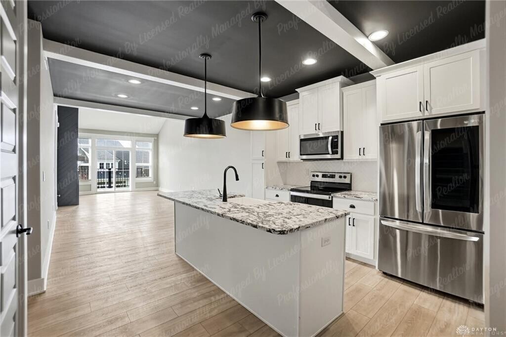 Available now! No pets. Security deposit is same amount as rent. Application fee is $60 per adult and all adults in the household must apply. Listed price does not include $60 per month resident benefits package which includes ID fraud protection, positive credit reporting, pest control, a resident rewards program, access to a tenant portal, a moving concierge program, lockout reimbursement, and much more. This beautifully designed 2 bed, 2.5 bath condo offers nearly 1,750 SF of elegant, low maintenance living. The open concept layout features a spacious great room w/gas FP & vaulated ceiling, filled w/natural light, perfect for relaxing or entertaining. The modern kitchen impresses w/SS appliances, Copenhagen Quartz island & countertops, upgraded cabinetry that opens to the dining area. The main level primary suite provides a private retreat w/trey ceiling, walk-in closet & luxurious bath featuring upgraded porcelain tile flooring, dual vanities w/porcelain sink & no contact faucet & walk-in shower. Upstairs, a generous 2nd bedroom w/it's own full bath & walk-in closet is complemented by a flexible loft space ideal for a home office, media room, or guest lounge. Enjoy the convenience of main level laundry & attached 2-car garage. Out back off the great room offers your own private deck to relax on. Outside, the quiet cul-de-sac setting offers peace & privacy, while the HOA handles lawn care, landscaping, snow removal, & exterior maintenance. This unit was the builder's model home & had upgrades & options (40K), such as black wood stairs w/black railings, modern urban ceiling w/black paint, lighting & upgraded design, LVP flooring throughout minus the bedrooms & closets, crystal light fixtures & ceiling fans, black accent paint & trim, Dimming Caseta Lutron smart lights w/additional dimmable lighting, upgraded H20 heater, custom blinds, Google Nest Ecobee Smart Thermostat. Close to The Greene, WPAFB, WSU, UD, I675, and more!