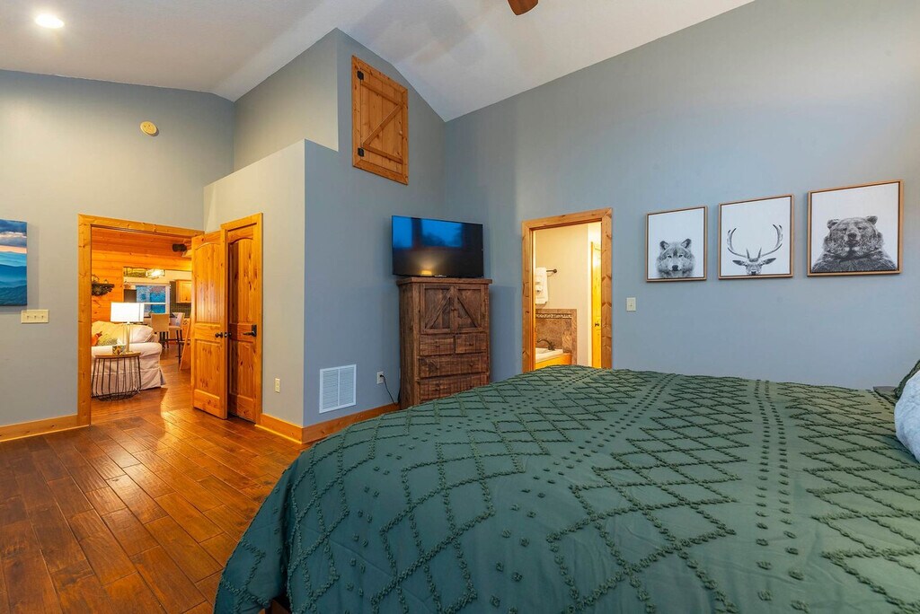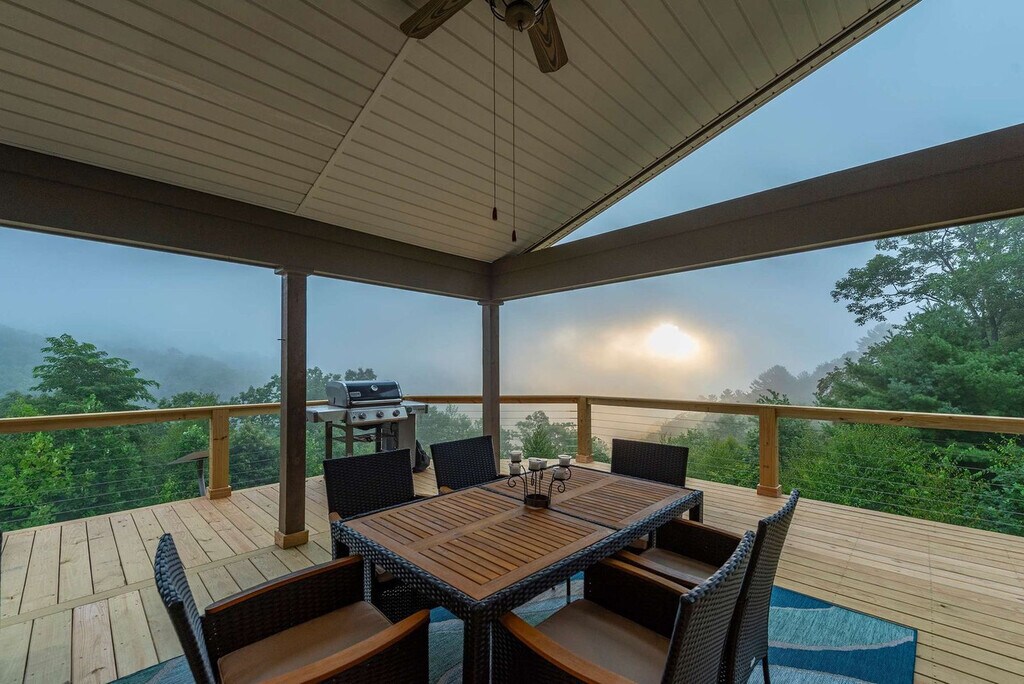 This 3-bedroom cabin in Waynesville, NC, offers everything you need for an amazing vacation. Set on 120 acres of pristine North Carolina countryside, this spacious 2-level cabin combines rustic charm with modern comfort. With 3 bedrooms and 3 bathrooms, the cabin comfortably accommodates up to 10 guests, making it ideal for family gatherings or group getaways. Enjoy the expansive deck with stunning mountain views, a hot tub, and ample parking for up to 5 cars. Welcome to your private mountain sanctuary, where you can wake up to birdsong and explore private walking trails through lush forests. The cabin features a fully stocked kitchen with high-end appliances, a large refrigerator, and a Keurig coffee maker. Relax in the living room with an 85” smart TV, large plush sofa, and indoor fireplace. Outdoor amenities include a fire pit, BBQ grill, and corn hole for endless entertainment. Up to 2 dogs are allowed for $125 per stay, but no cats please. Parking is available in front of the house and driveway for up to 5 cars, with no street parking allowed. This secluded retreat is perfectly located between Gatlinburg, the historic Biltmore Estate, and Asheville’s vibrant arts and dining scene. Nearby attractions include the Biltmore Estate, Great Smoky Mountains National Park, and Wheels Through Time Motorcycle Museum. Enjoy local dining at The Red Fox Mountain Tavern and The Sweet Onion Restaurant, all within a short drive. Access to this home requires a 4WD vehicle, particularly during winter months. Check-in is at 4pm and check-out is at 10am. No parties are allowed, and violations may result in immediate termination of the stay. Guests must be 21 years or older to book this property. Please do not leave any trash or food outside to protect local wildlife. An exterior camera is installed for quality and security purposes. Registration Number: NA [SI]