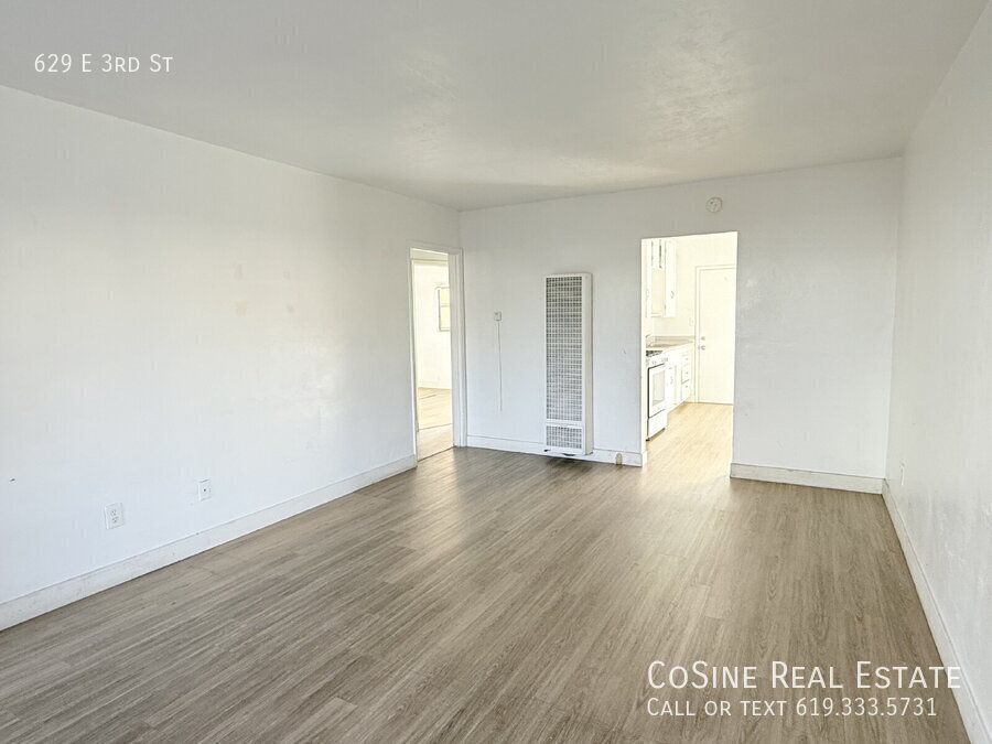 This 1st floor apartment in National City offers a practical layout within a quiet, 7-unit building. The interior is finished with laminate flooring throughout, creating a consistent look from the large living room into both spacious bedrooms. The kitchen is notably large, providing a significant amount of cabinet storage for household essentials. A back door located right in the kitchen allows for easy fresh air circulation and provides a secondary entrance from the side yard. Both bedrooms are very spacious. Lots of windows through the unit gives it tons of natural light. For daily convenience, the property includes one assigned parking space and on-site laundry facilities. The excellent location puts you near local shopping centers and quick freeway access, making it a central spot for commuting or running errands. LEASE DETAILS - Available NOW - Rent: $1,995 - Deposit: $995 - Tenant pays all utilities - Military Discounts (20% off the security deposit) Questions? Call/Text Professionally Managed by CoSine Real Estate DRE #01976619