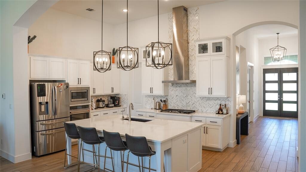 Prepare to be utterly charmed by the delightful dwelling awaiting a new resident at 629 Rocky Spot DR. This is an attractive property, with 14 ft high ceiling and single level floor plan is built with unique structural upgrades by the builder to maximize room sizes. It presents itself in truly great condition, ready for its discerning new occupants to infuse it with their own unique spirit. The kitchen, a true heart of culinary adventure, beckons with its stunning backsplash and practical kitchen bar, perfect for quick bites or engaging conversations. A grand, large kitchen island crowned with elegant stone countertops provides ample space for meal preparation, while shaker cabinets offer stylish storage. The sleek stovetop and a sophisticated wall chimney range hood promise delightful cooking experiences. A dedicated cinema room offers the perfect escape for movie buffs and entertainment enthusiasts, providing an immersive experience without ever leaving the comfort of home. Beyond the interior comforts, the property extends its allure outdoors within a friendly residential area, featuring a welcoming patio, a private greenbelt backing lot, each offering delightful spots for savoring the fresh air. Situated in a Amenity rich community this house is perfect for families, schedule a tour now. MLS ID 5101851