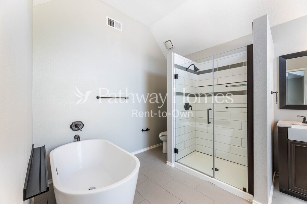 Apply online or call us at to learn more! Picture yourself in this gorgeous two-story home in the well-established subdivision of Lake Bluff in Flower Mound! This property boasts excellent curb appeal! The open floor plan provides an inviting entryway with easy access to office space and the formal dining room. The living area creates a cozy ambiance with a gas fireplace. Entertain family and friends from the living room that also opens to the eat-in kitchen. The primary bedroom is a true oasis located on the second floor with tall ceilings and plenty of room for a seating area. The en-suite bath has a walk-in shower, a separate soaking tub, and dual sinks. Retreat to the backyard and enjoy the covered porch that features a fan, perfect for entertaining all year around. *This home does not have an option to purchase. This home can only be rented through Pathway Homes. Pathway Homes will never ask you to wire money or pay with gift cards. Please report any fraudulent ads to Pathway Homes .