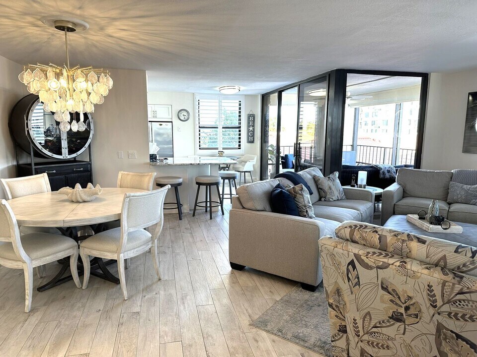 Link to You Tube Video: OR - go to my website: and click on Rentals to see all listings. Beautifully updated/renovated third floor Bahia "O" Building - Furnished 1500 sq. ft. Two Bedroom - Two Bathroom condo for lease (SIX MONTH RENTAL) beginning approx. APRIL 29, 2026 - OCT 31, 2026 (give or take). Enjoy morning breakfast on the outdoor balcony with partial water views and morning sun. This condo has an updated coastal feel, with light porcelain tile plank look flooring, newer furnishings, decor & lighting throughout. Spacious kitchen has white cabinetry, granite counters with peninsula seating, wine/beverage cooler, pantry and stainless appliances. Comfortable living room furnishings surround a huge flat screen tv. Spacious primary bedroom has new king size furniture. Large en suite bath vanity with two sinks, granite, espresso cabinetry and THREE closets. Separate shower and toilet. Bedroom #2 is a combination room, having a queen bed and built-in Murphy bed PLUS office/den furnishings including desk, printer/flat screen tv and a large walk-in closet. Updated hall bath with granite, cabinetry, and a tub/shower combo. Electronic hurricane shutters. Separate utility room with full size washer-dryer. Sorry, NO PETS allowed per condo rules-regs. Tenant will reimburse owner monthly for electricity. Water/Sewer/Garbage/Ext. Cable/Internet/WiFi included in the rent. Waterfront heated pool and spa for your use as well as clubhouse with fitness room & billiard table. Covered assigned parking space on 2nd floor ramp included.