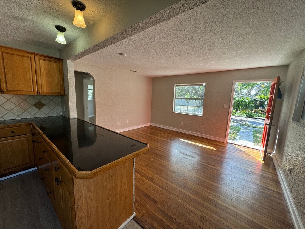 Welcome to this spacious four-bedroom house located near Gulfport in St. Petersburg, FL. This charming home offers a comfortable and convenient living experience. With four bedrooms and two bathrooms, there is plenty of space for everyone. The large family kitchen is perfect for preparing meals and entertaining guests. The kitchen comes equipped with a refrigerator, stove, and microwave, making cooking a breeze. The wood floors throughout the front part of the house add a touch of elegance and are easy to maintain. Enjoy the convenience of a fenced yard, providing a safe space for outdoor activities or simply relaxing in the fresh air. Stay cool during the summer months with central air and heat, ensuring a comfortable living environment year-round. The ceiling fans in each room provide additional comfort and help circulate the air. The blinds offer privacy and allow for natural light to fill the rooms. The washer and dryer stackable, is included for your convenience. With alley access, parking is a breeze. This two-story house provides ample space for all your needs. Don't miss out on this wonderful opportunity to make this house your home. Contact us today to schedule a tour and experience the comfort and convenience this house has to offer.