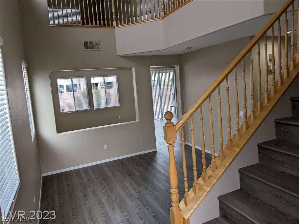This corner-lot, two-story 3-bedroom, 2.5-bath home is located on the western edge of Southern Highlands near Cactus and Jones, offering convenient freeway access. Inside, the home features vinyl plank flooring throughout and comes complete with all appliances. The layout includes walk-in closets in every bedroom, a dedicated kitchen pantry, and a primary bathroom with separate tub and shower. The backyard is fully landscaped with rock, providing a functional outdoor space. *Use the Five Star App online, and read carefully. Approved applicants must pay a holding deposit and sign a deposit form w/in 24 hours. Tenant to verify all data the tenant is relying on.* If this listing notes pets are allowed, then they must be screened and pay pet rent.* Restrictions may be imposed by HOA/Owner/Insurance*