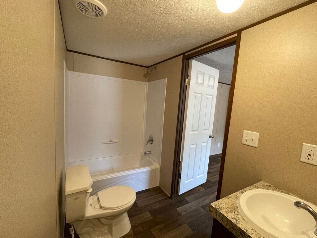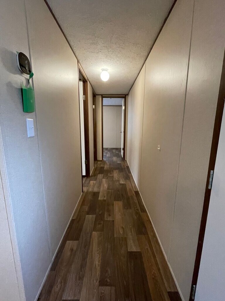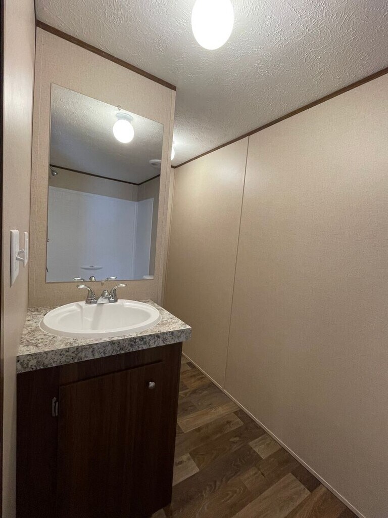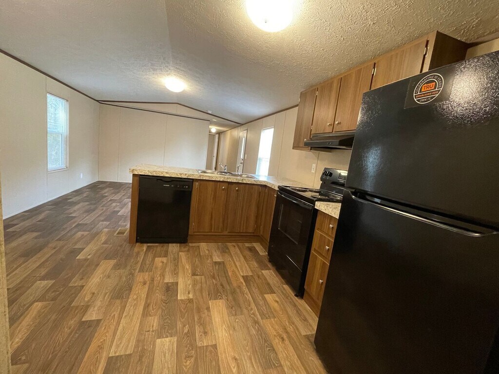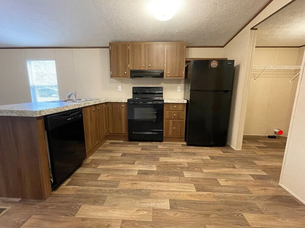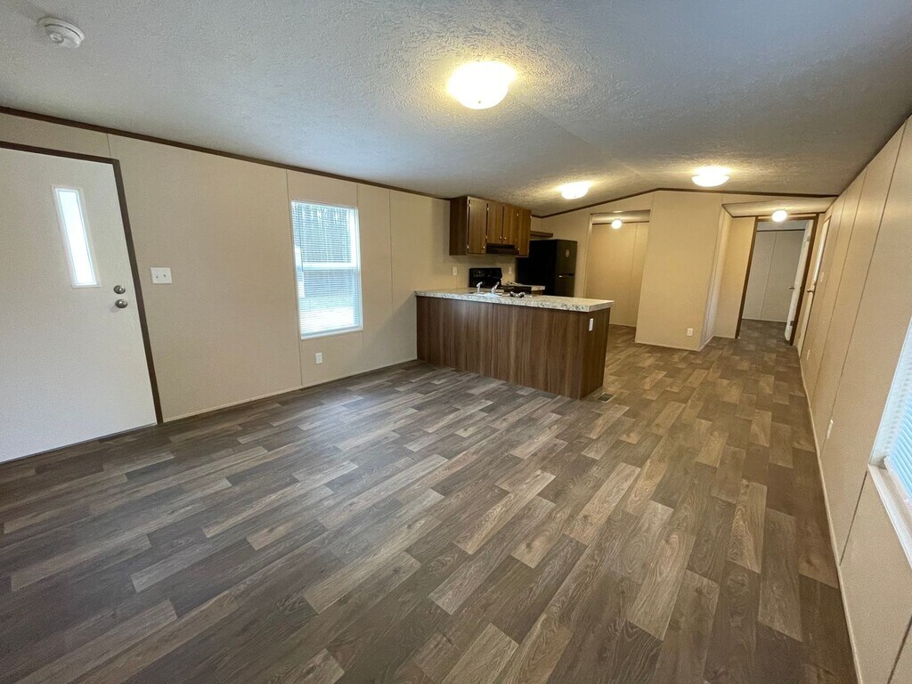 Brand new singlewide mobile home, (14 x 66) in new MH park. 3 bedroom, 2 bath. Split floor plan. Laminate floors. Dishwasher, refrigerator and stove. Hook up for washer and dryer in laundry nook. Blinds in all rooms. No microwave. Storm doors on front and back. Small backyard.