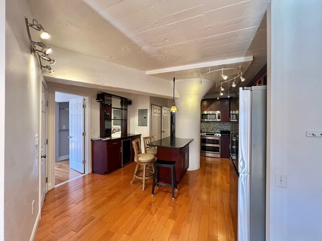 Gorgeous 2/3 bedrooms and 2 bathrooms at the prestigious Prince Building. With great views of Boston at this corner unit,you will enjoy its completely gleaming hardwood floors,beautifully designed layout,and flow and city views as well. Upgraded kitchen is with beautiful granite counter-tops,high-end SS appliances,good size pantry / closet space and directly open access to formal living area. Large living room with wall of wide windows that flood the unit with natural light and hardwood flooring. Primary bedroom offers closet space and a full bathroom. Great location close to everything - Faneuil Hall /Quincy Marketplace,Aquarium,Harbor Walk and the best of North-End restaurants and cafes - finest Boston living. In-unit laundry. Heat and hot water are both included. MLS# 73481085